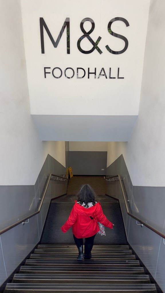 Vers 9h20, nous nous dirigeons vers l’arrêt du tramp de l’aéroport et le prenons jusqu’à l’extrémité de Princes Street. Nous descendons au food hall du Marks & Spencer et fonçons directement au rayon boulangerie – depuis le temps, on connaît le magasin par coeur. J’attrape quatre paquets de nos bien-aimés scones au cheddar et, comme je veux payer en liquide, me dirige vers la seule caisse avec un employé: un monsieur probablement trisomique, qui aide un client probablement atteint de la maladie de Parkinson à emballer ses courses. La scène me fait chaud au coeur.