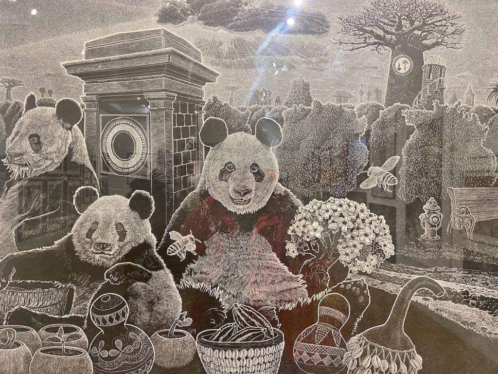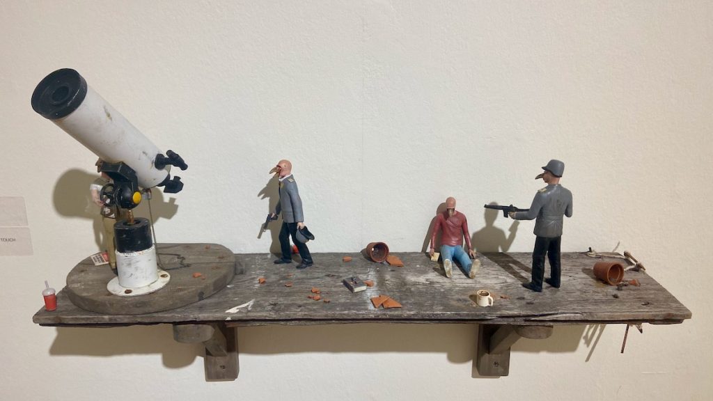 Pour me consoler, j’entraîne Chouchou vers le bâtiment d’en face au sous-sol duquel se trouve la boutique, dans l’espoir qu’elle vendra quelque reproduction. Et là, nous tombons sur une expo temporaire d’oeuvres contemporaines intitulée « Observed from life ». Tout à fait mon truc, pour une fois! Nous passons un très agréable moment à déambuler dans les salles quasiment désertes.