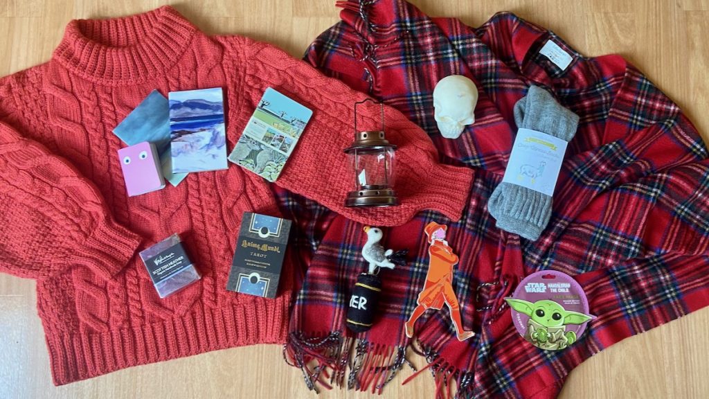 Finalement, nous arrivons à notre porte d’embarquement sans contrôle de douane – alors qu’à l’aller, nous en avions eu un à Zaventem avant de partir et un autre à Edimbourg en arrivant. (Si quelqu’un peut m’expliquer pourquoi, vraiment, je suis curieuse!) Il me reste assez de temps pour aller dépenser mes dernières livres dans l’un des magasins alentour. Voyant que les shortbreads Walker sont plus chers qu’à Bruxelles, et étant déjà largement pourvue en magnets du cru, j’opte pour un masque cosmétique bébé Yoda Grogu et un KitKat, car je n’ai rien pu avaler au snack où on s’est posés en attendant l’annonce de notre porte d’embarquement. Pas grave, j’ai fait des réserves de calories pendant ces deux semaines!