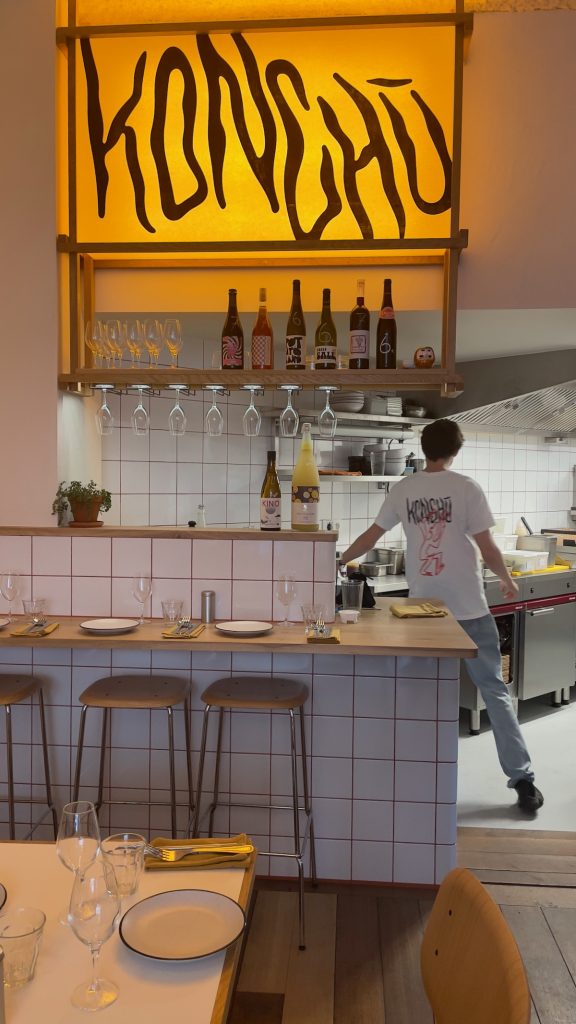Toujours à l’affût de nouvelles adresses où aller manger un bout dans notre quartier, nous avons testé ce restaurant mercredi. Ouvert deux semaines plus tôt par une équipe toute jeune et très dynamique, le Konchû se situe à proximité du parvis Saint-Boniface. Et même un soir de semaine à l’ouverture, l’affluence était déjà au rendez-vous…