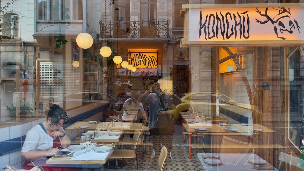 Konchû, rue Etienne Solvay 20, 1050 Bruxelles. Ouvert du mercredi au samedi, de 12h à 14h30 et de 18h30 à 22h.