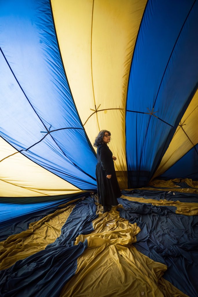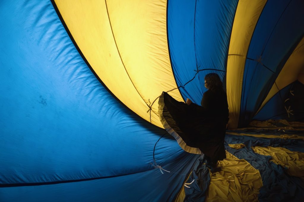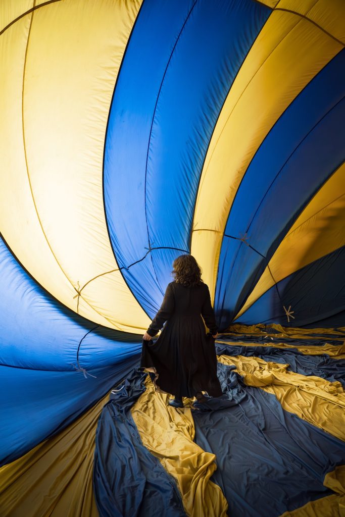 Il nous restait donc plusieurs heures à occuper sur site avant l’éventuel envol de masse du soir. J’ai acheté une glace à l’italienne, et comme il ne restait plus assez de parfum chocolat pour me faire une double, la dame m’a dit: « Je vous l’offre ». (Moi: « C’est gentil, mais je vous ai déjà payée. » La dame, confuse, m’a rendu mes sous.) Nous avons glissé nos bulletins dans l’urne du concours permettant de gagner deux baptêmes par jour, organisé par la radio locale qui assurait l’animation sonore. Nous avons fait un tour dans l’attraction appelée le Ventre du Ballon, et permettant d’entrer à l’intérieur d’une toile semi-gonflée.