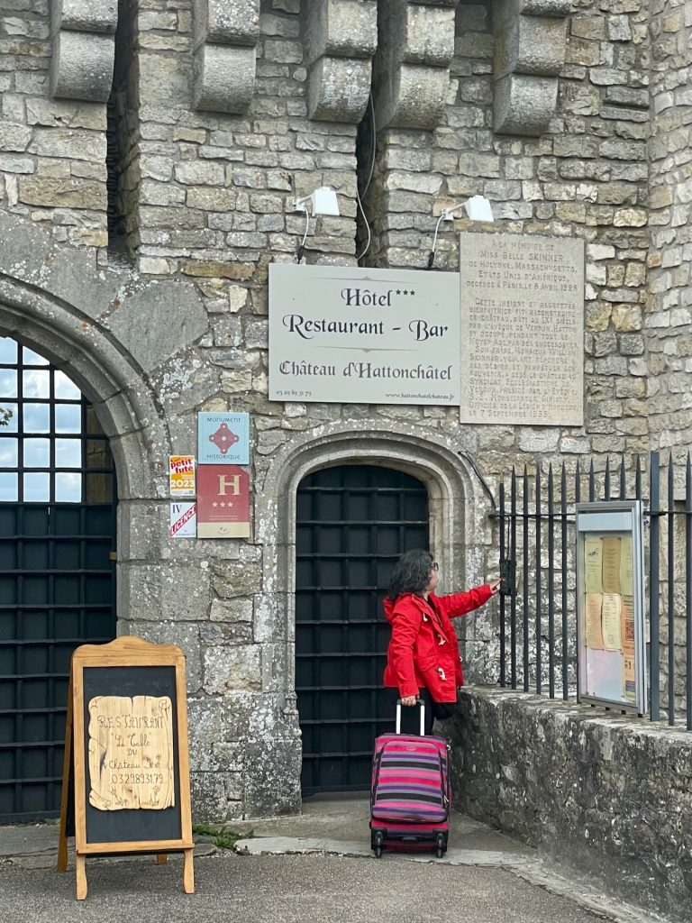 Mercredi matin, nous nous sommes donc mis en route vers 9h, et après un mini-cafouillage dû à un câble d’iPhone qui ne connectait pas au GPS de la voiture, nous avons roulé sans encombres jusqu’à la petite commune de Vigneulles-lès-Hattonchatel où j’avais réservé une chambre pour la nuit dans le château local. L’arrivée fut plus mouvementée que prévu: la route initialement indiquée par notre GPS s’est avérée barrée pour travaux. La route de remplacement était un simple chemin de campagne dont l’état n’a cessé de dégénérer au fur et à mesure que nous nous rapprochions de notre destination. Il nous restait 400 mètres à parcourir quand notre voiture s’est retrouvée coincée sur un sentier gravillonneux en pente abrupte.