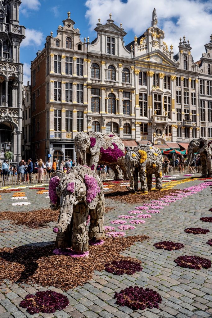 En outre, du 11 au 15 août, les créateurs du Tapis de Fleurs qui recouvre la Grand-Place les années paires proposent un événement alternatif baptisé Flower Time. Des éléphants en bois défilent devant l’Hôtel de Ville, dont les salles historiques dont décorées par une vingtaine d’artistes floraux belges et étrangers. La visite coûte 12€, réglables sur place en liquide ou en carte.