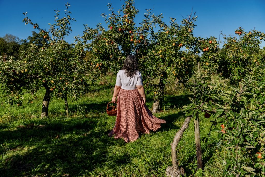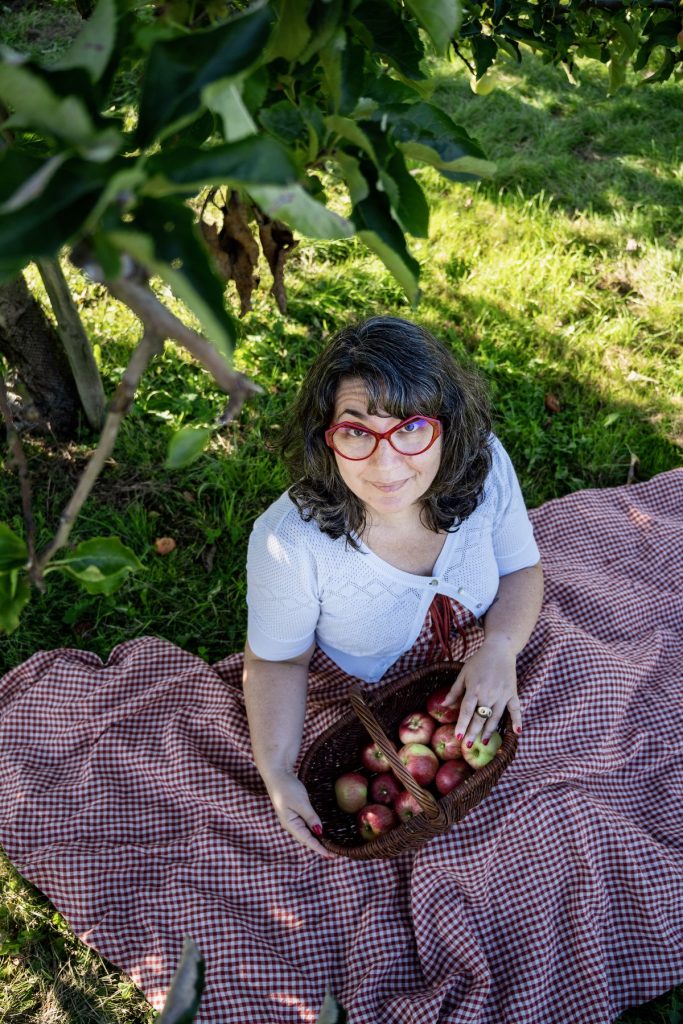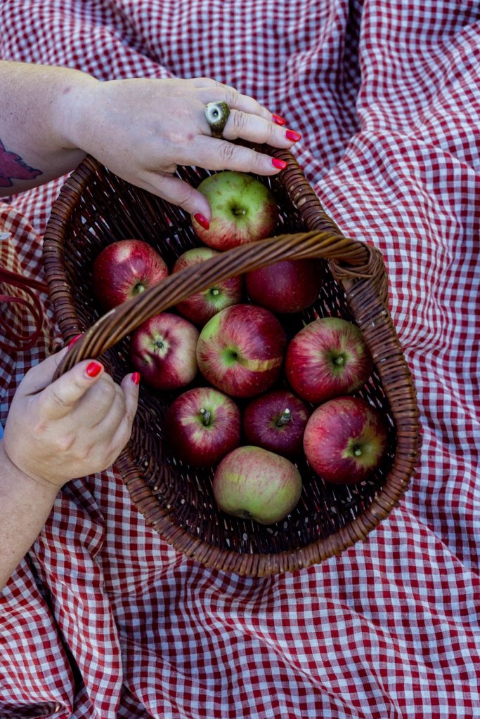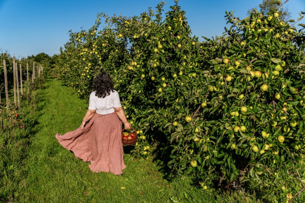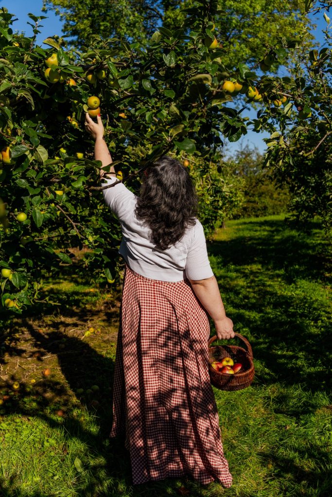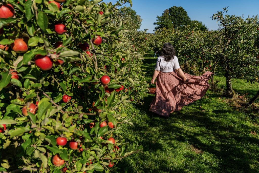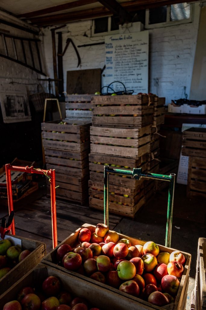 Ca fait 3 ou 4 ans que tous les automnes, je manifeste mon envie d’aller prendre des photos dans un verger de pommiers sans trouver de site adéquat à proximité de Bruxelles. Mais cette fois, miracle! Ma désormais rituelle recherche internet m’a amenée jusqu’au site de la Culture fruitière du Point du Jour, située à une cinquantaine de kilomètres de chez nous. Le temps de réserver une Cambio, de choisir une tenue puis de dépoussiérer le panier en osier qui attendait désespérément en haut de la bibliothèque, et dimanche dernier, nous avons foncé dans le Hainaut.