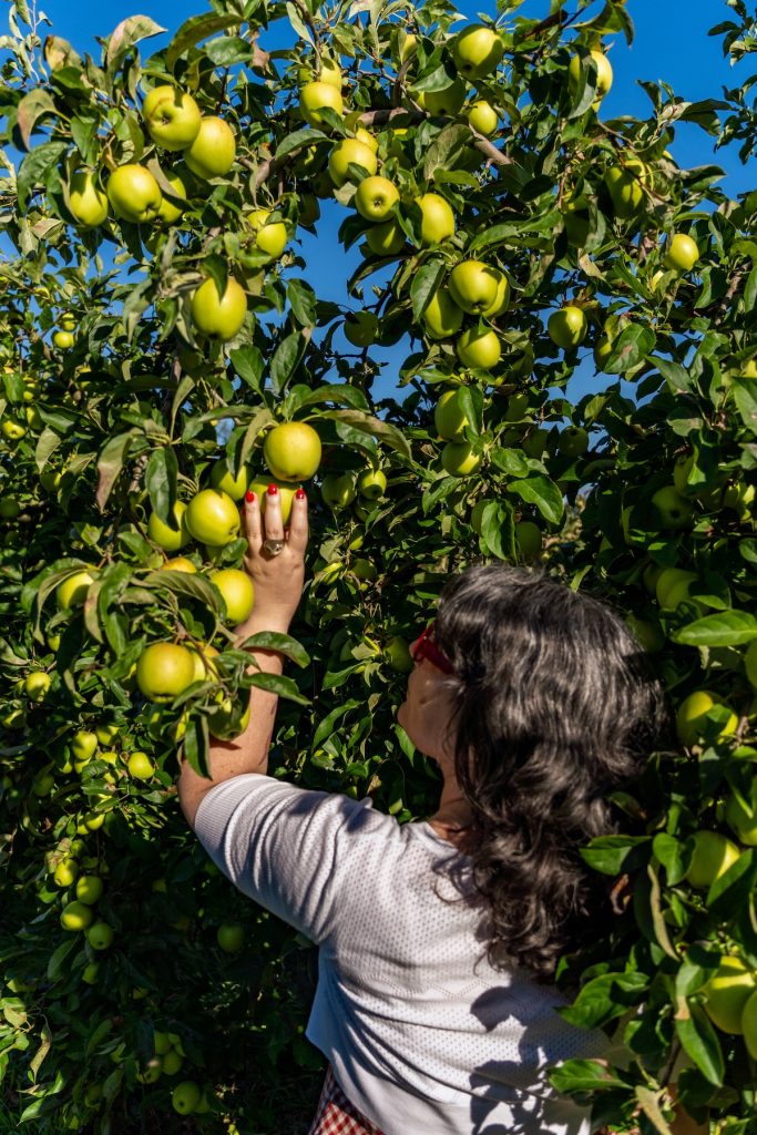 Pour information, les pommes déjà cueillies sont à 2,80€ le kilo quelle que soit la variété; quant à celles qu’on cueille soi-même, les tarifs dégressifs vont de 2,50€ à 1,50€ le kilo. Au final, j’ai donc dépensé la folle somme de 5,30€ – soit beaucoup moins que la location de la voiture pour venir jusque là. Dans les jours prochains: la tarte Tatin avec l’empreinte carbone la plus lamentable de l’histoire de la pâtisserie. Mais bon, j’ai rayé un truc de ma bucket list photo!