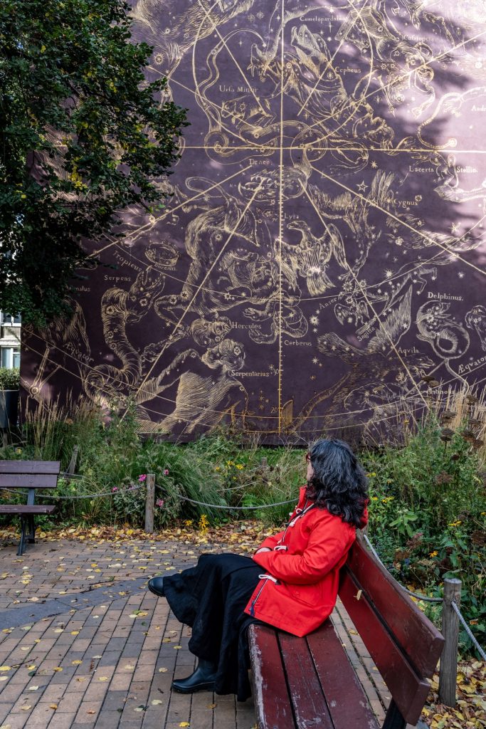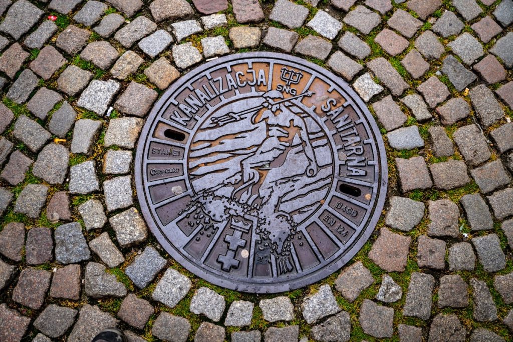Après moult arrêts dans divers magasins touristiques (je cherche une jolie maison en céramique pour poursuivre la collection entamée il y a quelques années à Tallinn, et puis aussi 2-3 magnets moins moches que la moyenne), nous arrivons au niveau du Love Bridge sur lequel sont accrochés des centaines de ces détestables cadenas. Mais le bout de rivière est joli, tout comme la fresque astrologique située de l’autre côté.