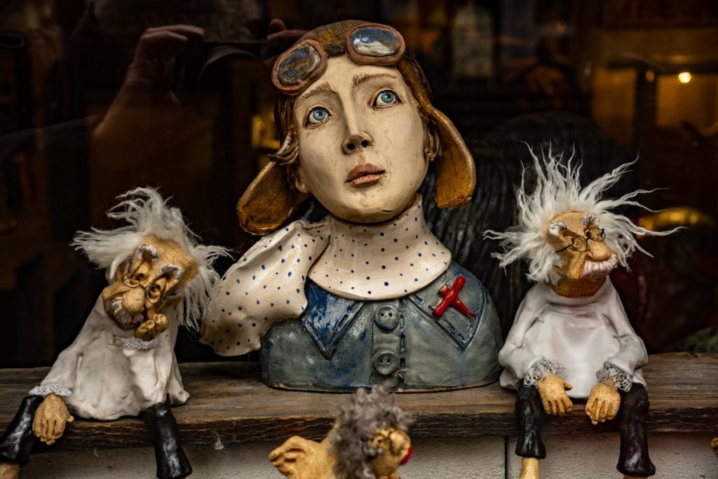 Il est déjà 11h passées quand nous sommes enfin prêts à nous mettre en route. Je n’ai pas de plan précis pour cette première journée à Gdansk, sinon déambuler au hasard des rues. Nous commençons par arpenter Dluga, l’artère commerçante historique que surplombent les fenêtres de notre salon. Dans l’une des toutes premières boutiques de souvenirs où j’entre, j’ai un coup de foudre pour une grosse bague d’ambre vert sur monture argentée. Bizarrement, ma Visa est rejetée lors de trois tentatives de paiement successives, et c’est Chouchou qui finit par me dépanner provisoirement avec sa Master Card.
