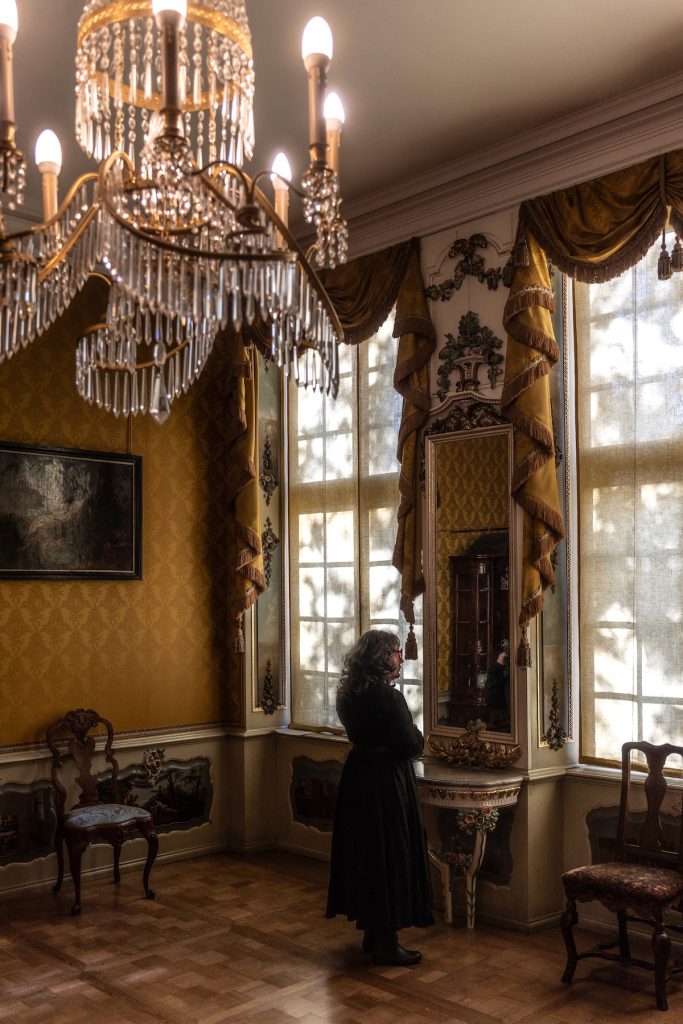 Nous nous rendons ensuite à la Maison Uphagen, construite dans les années 1780 pour un marchand et conseiller municipal qui n’était visiblement pas dans le besoin. Aujourd’hui, elle fait partie des musées de la ville, et on peut la visiter pour le prix modique de 23 zlotys. Autant j’aime la façade, autant la déco intérieure me laisse assez froide par rapport à celle d’autres maisons bourgeoises que j’ai visitées dans d’autres grandes villes européennes. Mais Chouchou multiplie les photos en poussant des exclamations ravies, donc ce n’est pas du temps perdu.
