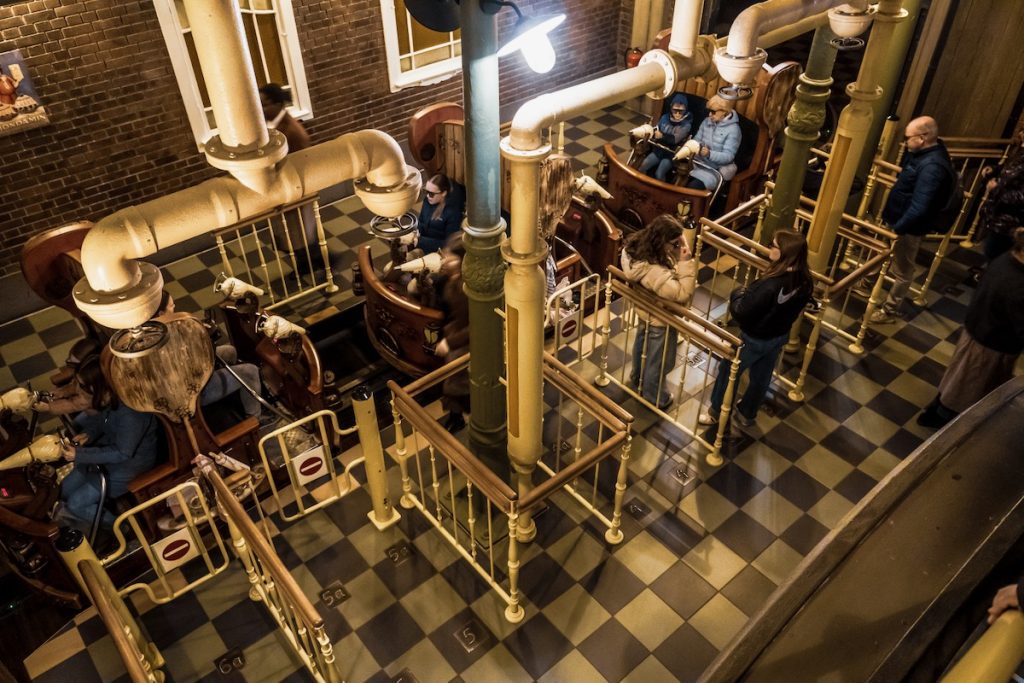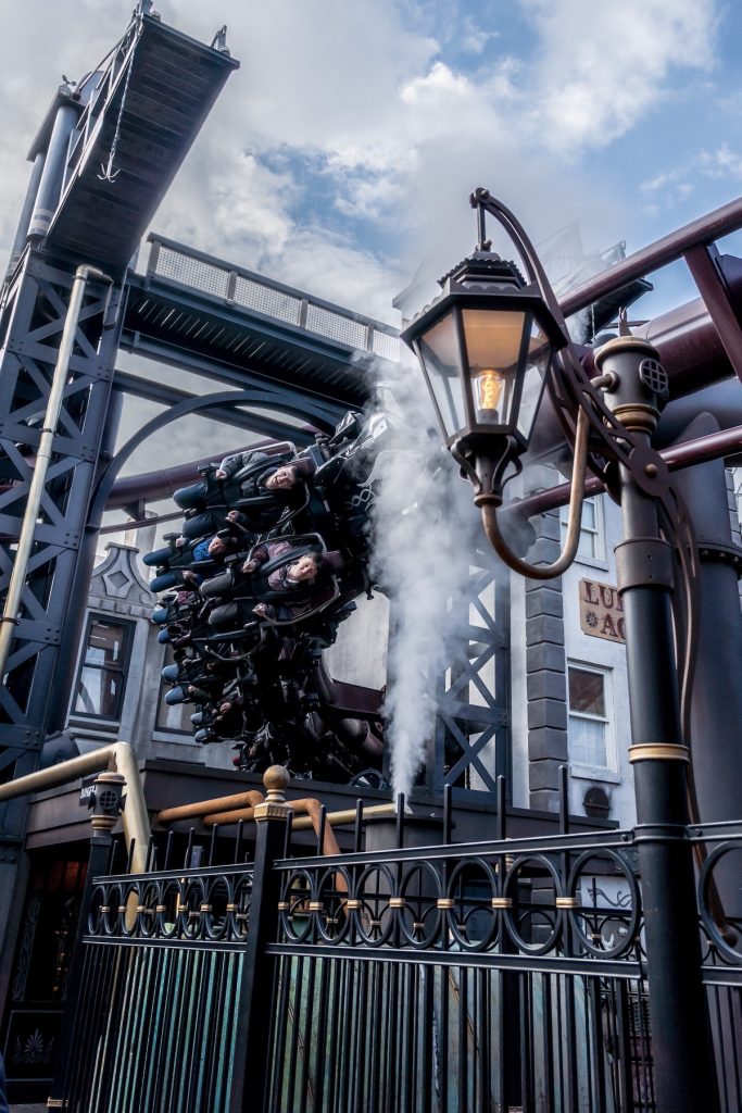 L’an dernier, nous avions eu l’éblouissement de la découverte, mais aussi le stress qui l’accompagne. Cette fois, nous étions bien préparés et nous avons profité du parc à notre rythme, en toute connaissance de cause. J’adore ce sentiment de rentrer un peu à la maison quand j’ai la chance de retourner dans un endroit que j’ai beaucoup apprécié. J’étais ravie de retrouver les petites musiques d’ambiance de Rookburgh et ses jets de vapeur, l’adorable vieux monsieur qui scanne les tickets à l’entrée et à la sortie de l’hôtel, les couchettes exiguës des cabines d’aéronautes et l’odeur de vanille qui annonce qu’on approche de l’embarquement dans Maus au chocolat. D’ailleurs, j’ai déjà commencé à dresser une liste de ce qu’on devra faire la prochaine fois qu’on ira!