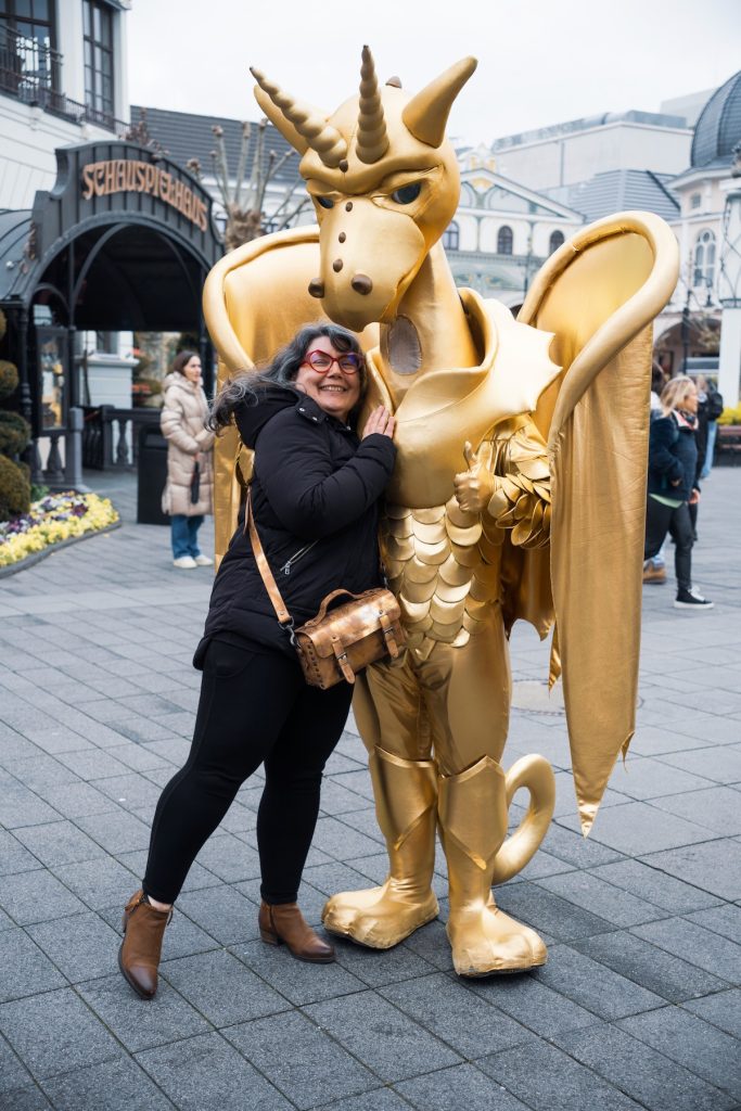 La météo a été incertaine pendant ces trois jours. Il faisait dans les 10° en journée, parfois avec un beau soleil, parfois avec un ciel menaçant et quelques gouttes de pluie. Etait-ce dû à cela ou plutôt au calendrier scolaire allemand? Les visiteurs étaient considérablement moins nombreux que lors de notre premier séjour l’an dernier. Peu d’attente dans les attractions et la possibilité d’avoir une table tout de suite dans n’importe quel restaurant, youhou! Je n’ai même pas eu à sortir les bouchons d’oreille emportés par précaution, et malgré ma fatigue chaque soir, je ne me suis jamais trouvée en surcharge sensorielle.