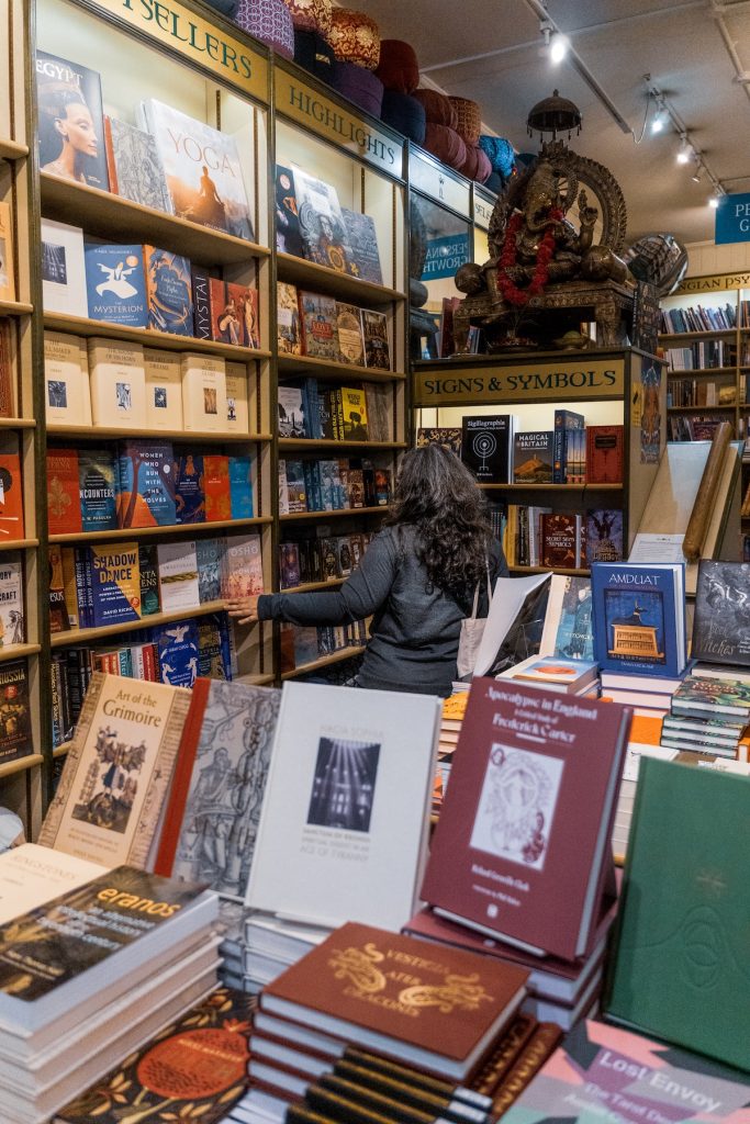 Enfin munis du précieux accessoire, nous nous dirigeons vers Cecil Court, une rue dans laquelle se succèdent des tas de bouquinistes spécialisés. J’y allais uniquement pour prendre des photos, mais à ma grande surprise, je finis par y faire mon premier achat londonien: une belle édition de « The master and Marguerite », que j’ai lu et adoré dans une bête version poche française quand j’avais 18 ou 19 ans. Je suis encore plus surprise d’avoir fait cette découverte dans une librairie ésotérique qui empeste l’encens et où une voyante reçoit des clients dans une alcôve. S’il y a bien un genre d’endroit où je n’imaginais pas dépenser des sous un jour…