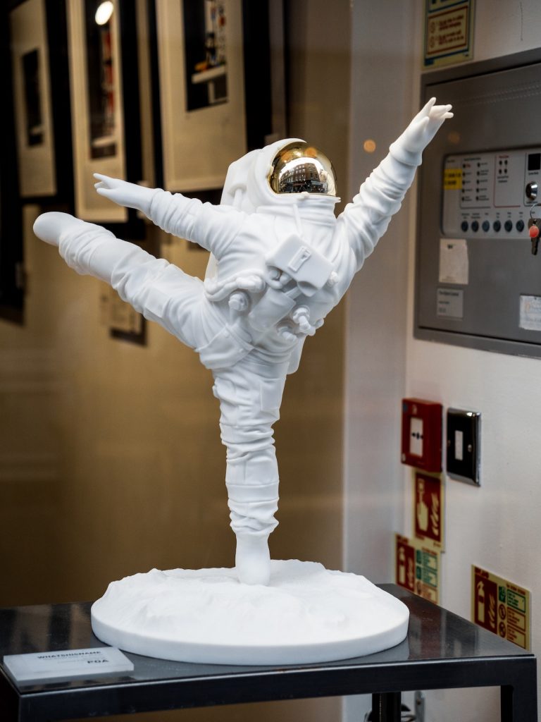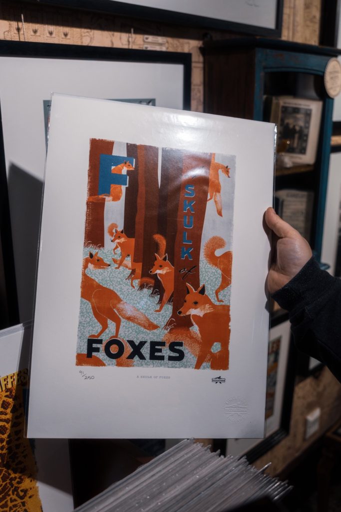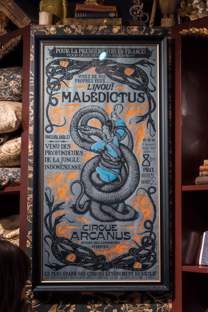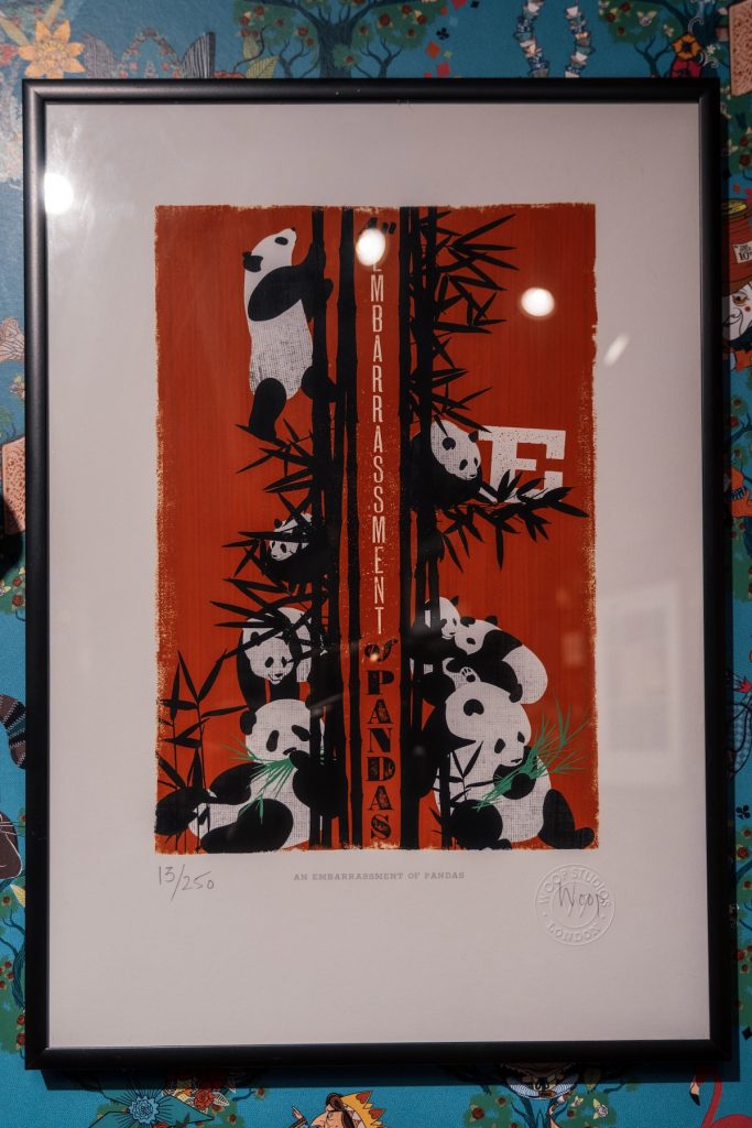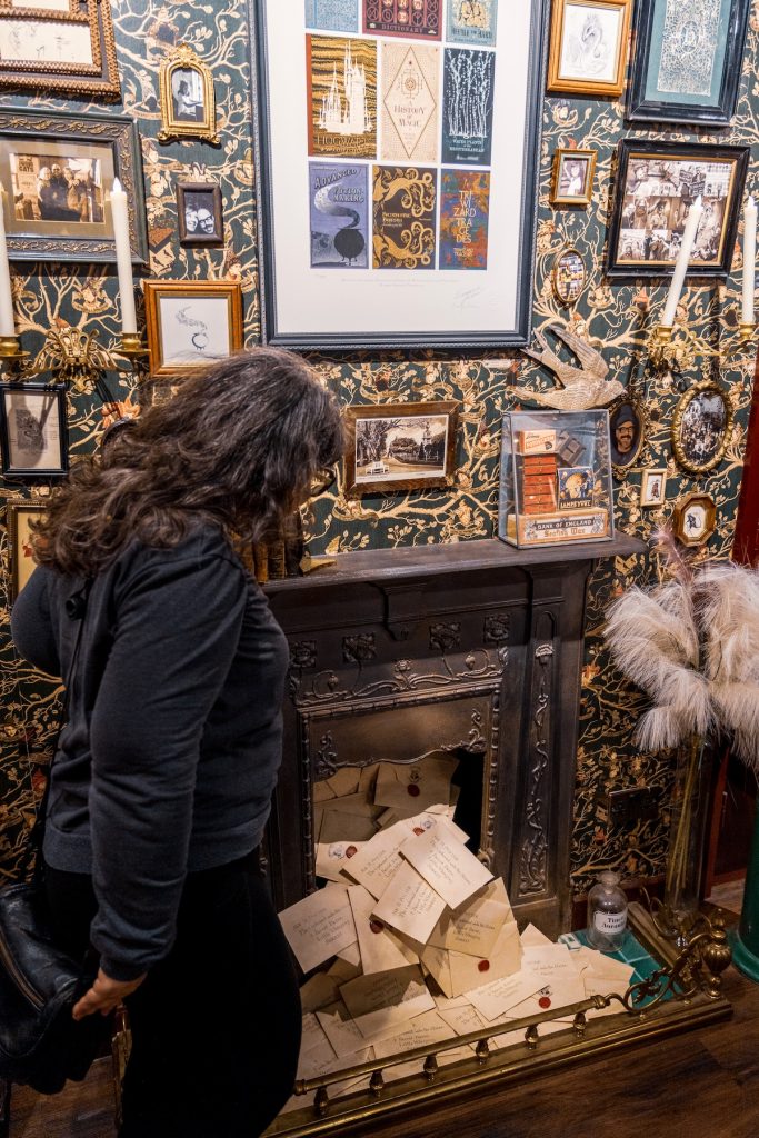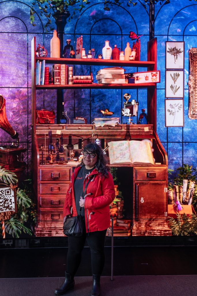 Nous passons ensuite chez Gosh! Comics, où je craque pour une collection d’essais graphiques sur l’incertitude, puis faisons un petit tour au magasin Wolf & Badger voisin où je résiste au chant des sirènes d’une paire de pantoufles en peluche blanche ornées de superbes broches rouges et roses « Fuck » et « Off ». Nous terminons cette virée shopping chez House of MinaLima (le studio de design responsable des décors des films « Harry Potter », qui a également produit de splendides éditions illustrées et pop-up de nombre de classiques de la littérature enfantine). En arrivant sur place, j’hallucine à la vue de la queue devant la porte d’entrée. Mais nous prenons notre mal en patience, et nous faisons bien, car à l’intérieur, la galerie sur deux étages est absolument magique.