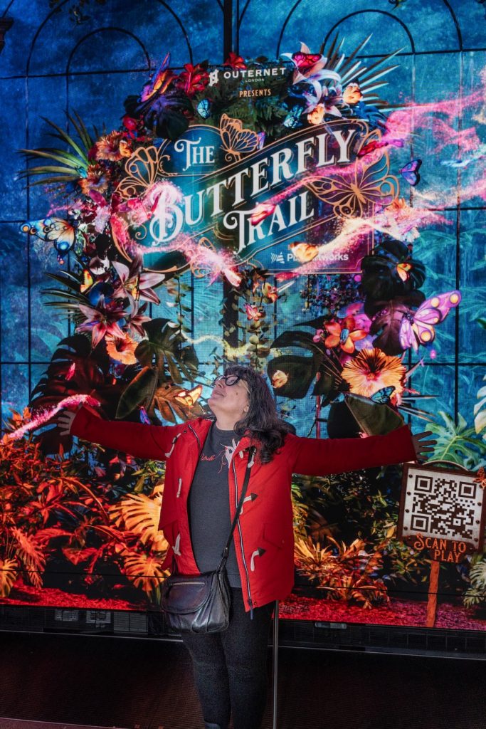 Premier arrêt en ce début d’après-midi: le Butterfly Trail, une immense installation vidéo en réalité mélangée – ce qui signifie que les spectateurs peuvent interagir avec les écrans au moyen de QR codes. L’accès est libre et franchement, c’est très bien fichu.