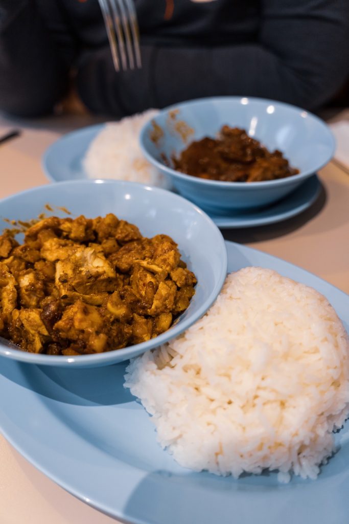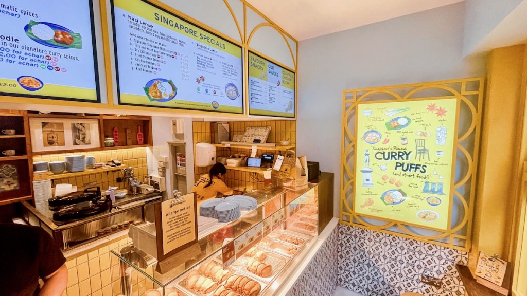 Nous rebroussons chemin jusqu’au Singapulah, un restaurant singapourien repéré un peu plus tôt: plus d’une vingtaine de personnes font déjà la file devant. Même chose devant tous les endroits tentants dans Chinatown. Nous finissons par atterrir chez Old Chang Kee, un snack singapourien (parce que quand j’ai une idée dans la tête, je ne l’ai pas dans les pieds) où nous mangeons de la street food toute simple mais pleine de saveurs. Le patron nous offre même un succulent chausson au curry en plus de notre commande.