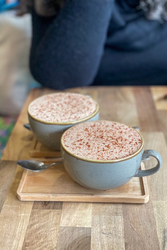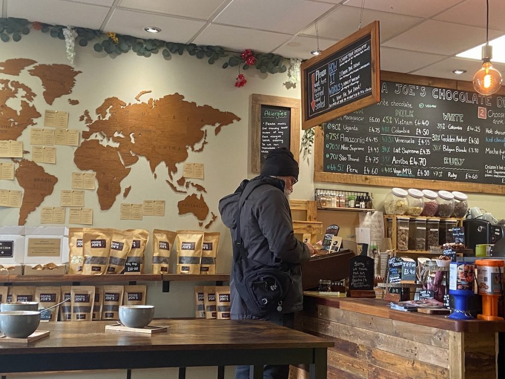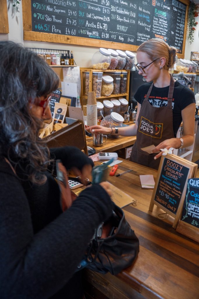 Nous trouvons encore deux géocaches virtuelles, plus une micro au logbook trempé située dans un endroit grouillant de Moldus. Vive nous. Il commence à pleuvoir fort, et nous allons nous réfugier chez Cocoa Joe’s, réputé pour préparer les meilleurs chocolats chauds d’York. Sur les carte de grands crus venus d’un peu partout à travers le monde (enfin, surtout de pays du sud), Chouchou choisit un Pérou à 65% de cacao et moi un Vietnam à 45%. Nous attendons assez longtemps car il y a un souci avec la machine, mais avec cette météo, nous ne sommes pas fâchés de rester au chaud et au sec! Et quand ils finissent par arriver, nos chocolats sont absolument délicieux.