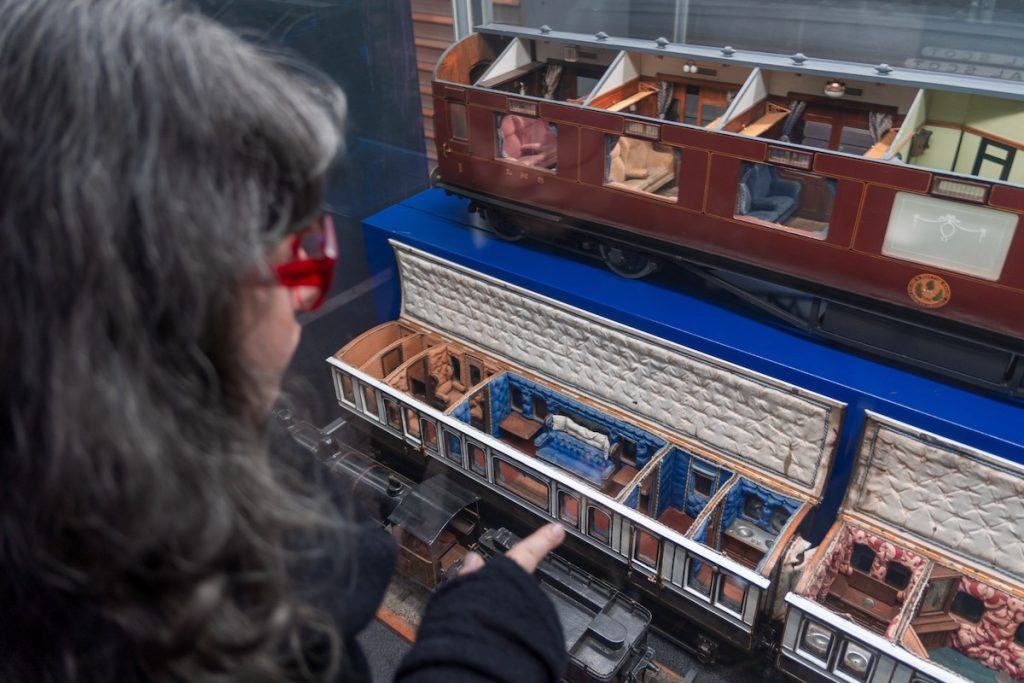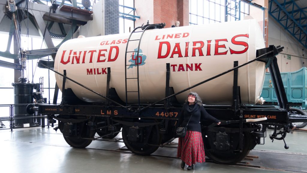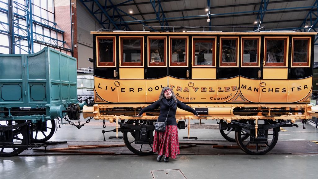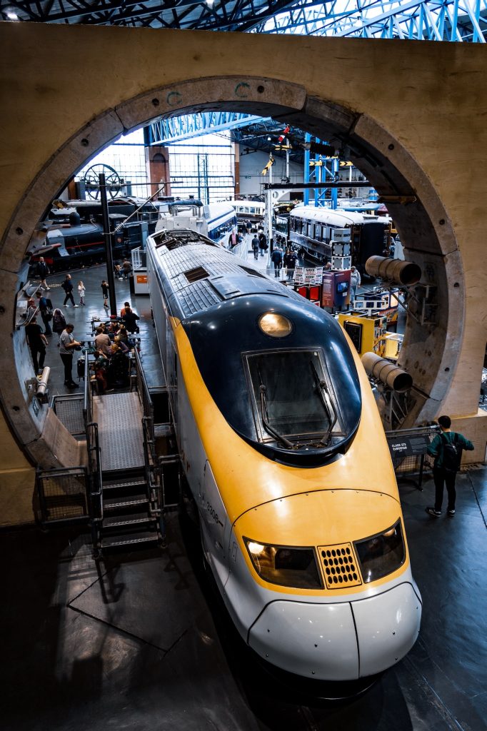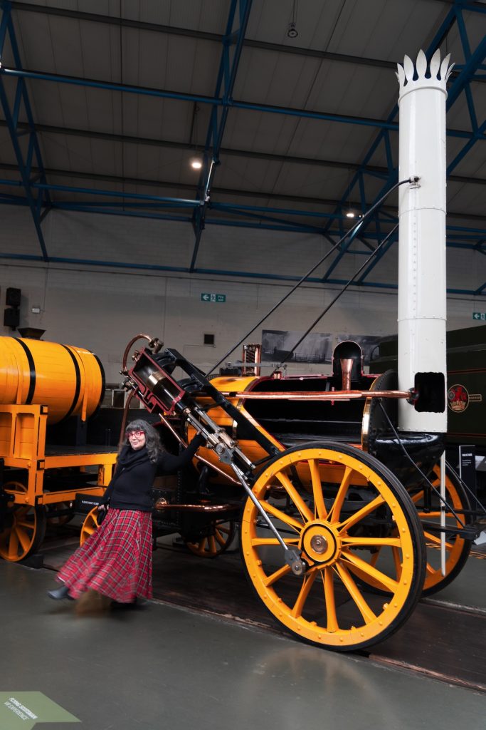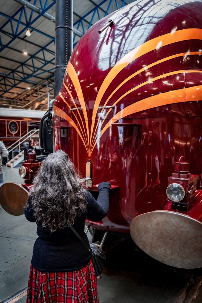 Sous une pluie battante, nous nous dirigeons vers le musée du train: nous avons pris des entrées pour le créneau de 13h30. L’endroit est en travaux en ce moment, et on ne peut pas accéder à tout. Cependant, c’est un bonheur d’admirer des locomotives et des wagons différents de ceux que j’ai déjà pu voir dans des musées du même type à Bruxelles, Riga ou Utrecht – le mythique Flying Scotsman, notamment. A la boutique, je craque pour une boîte en fer-blanc à son effigie. Elle est remplie de biscuits gingembre-miel qui, même sans signalisation ferroviaire (nous venons de voir une vidéo passionnante sur le sujet), ne devraient pas avoir de mal à trouver le chemin de l’estomac de Chouchou. On admirera au passage la répartition optimale des tâches dans notre couple.