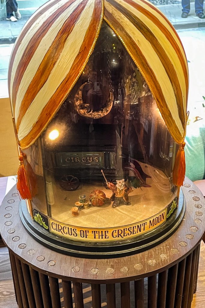 Nous interrompons nos recherches pour passer enfin chez Rookscroft & Company, une boutique dont la vitrine incroyable nous fait trépigner d’envie depuis que nous l’avons découverte par hasard dimanche soir. J’ai lu sur internet qu’elle était dédiée à un monde imaginaire peuplé d’animaux anthropomorphisés, oeuvre de l’autrice et illustratrice Jayne Siroshton. Ca vous fait penser aux Mémoires de la Forêt de Mickaël Brun-Arnaud? Ca a aussi été ma première pensée.