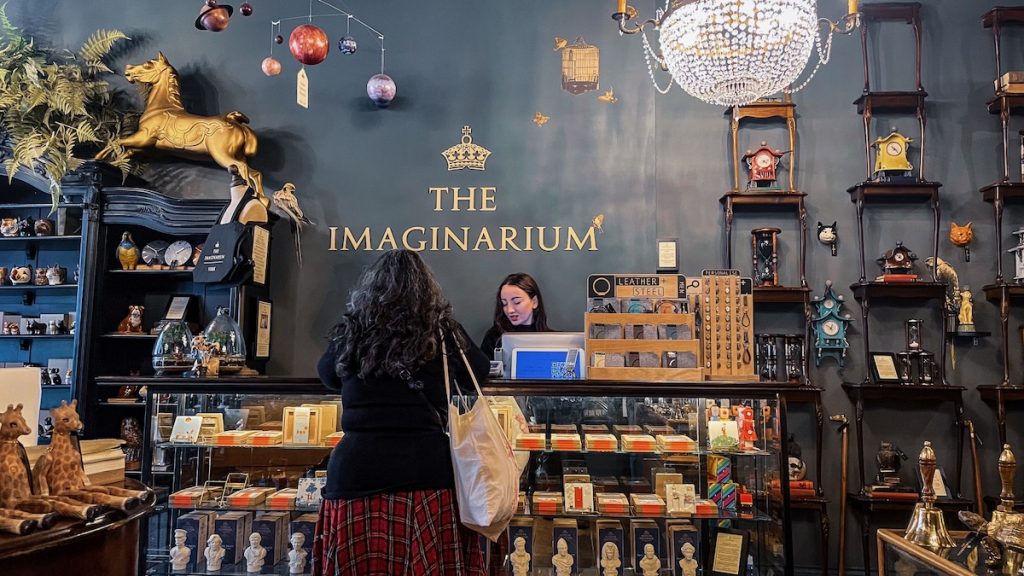En sortant, j’entraîne Chouchou chez The Imaginarium, cabinet de curiosités dans les tons noirs et dorés, puis son magasin-frère The Yorkshire Soap Company, entièrement rose bonbon et où on peut entre autres choses acheter des cosmétiques à base de larmes de licorne. Une des choses qui me frappe le plus à York depuis notre arrivée, c’est le nombre, l’originalité et la beauté des commerces indépendants. On sent vraiment que tout est fait pour préserver le charme fou du centre historique.