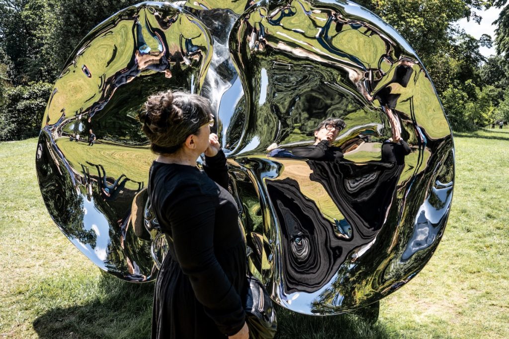 En ce moment, il y a dans le parc une exposition de Marc Quinn, « Light into life », dont les oeuvres spectaculaires représentent des fleurs et autres plantes en métal réfléchissant. Bien entendu, tous les visiteurs prennent des photos de leur reflet – nous y compris.