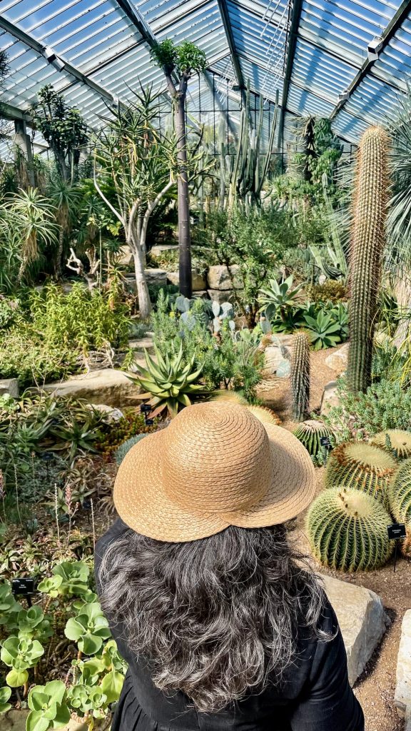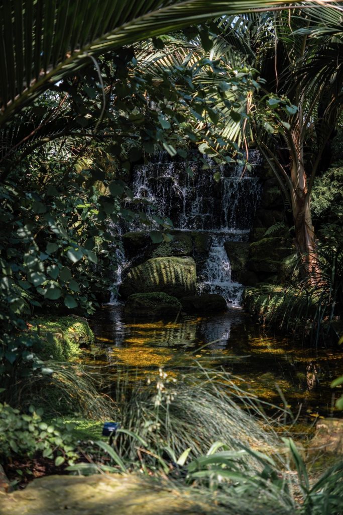 Il fait très beau aujourd’hui. Trop, même, pour moi qui n’ai prévu pour m’habiller que des robes à manches longues et des collants. Heureusement que j’ai le chapeau acheté à York pour me protéger du soleil! Premier arrêt sur notre route: la serre tropicale. Il fait déjà très chaud en bas, et comme la chaleur monte, le balcon est un véritable sauna. Impossible de prendre des photos potables à cause de la buée sur les objectifs. Mais le gros avantage, c’est qu’en ressortant, il me semble qu’il fait presque frais dehors!