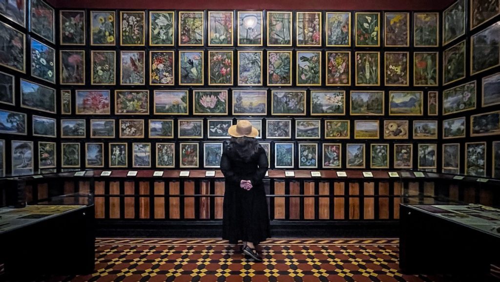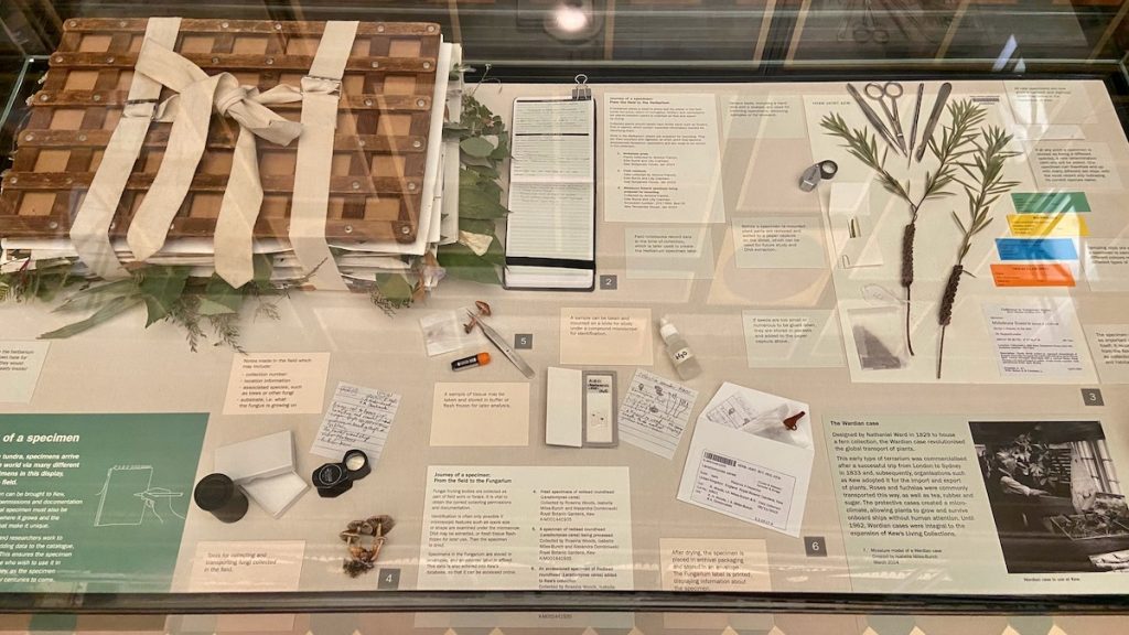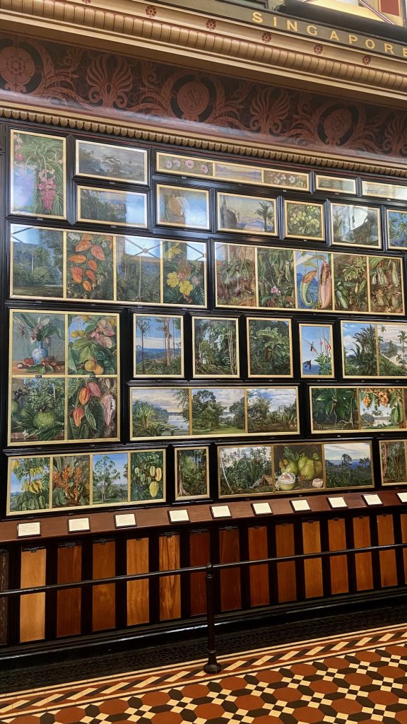 Au cours de l’après-midi, nous enchaînons la promenade sur la passerelle au-dessus des arbres, la visite de la serre tempérée, un petit tour à la grande pagode, un arrêt rafraîchissement au Pavillon, la découverte des superbes aquarelles botaniques de Marianne North, ainsi que l’exploration du Princess of Wales Conservatory qui abrite dix zones climatiques différentes. Le palais vient de fermer quand nous l’atteignons, et l’accès à la bibliothèque d’archives botaniques est malheureusement réservée aux professionnels accrédités. De toute façon, à ce stade, nos vieilles jambes supplient pour qu’on leur accorde un peu de repos.