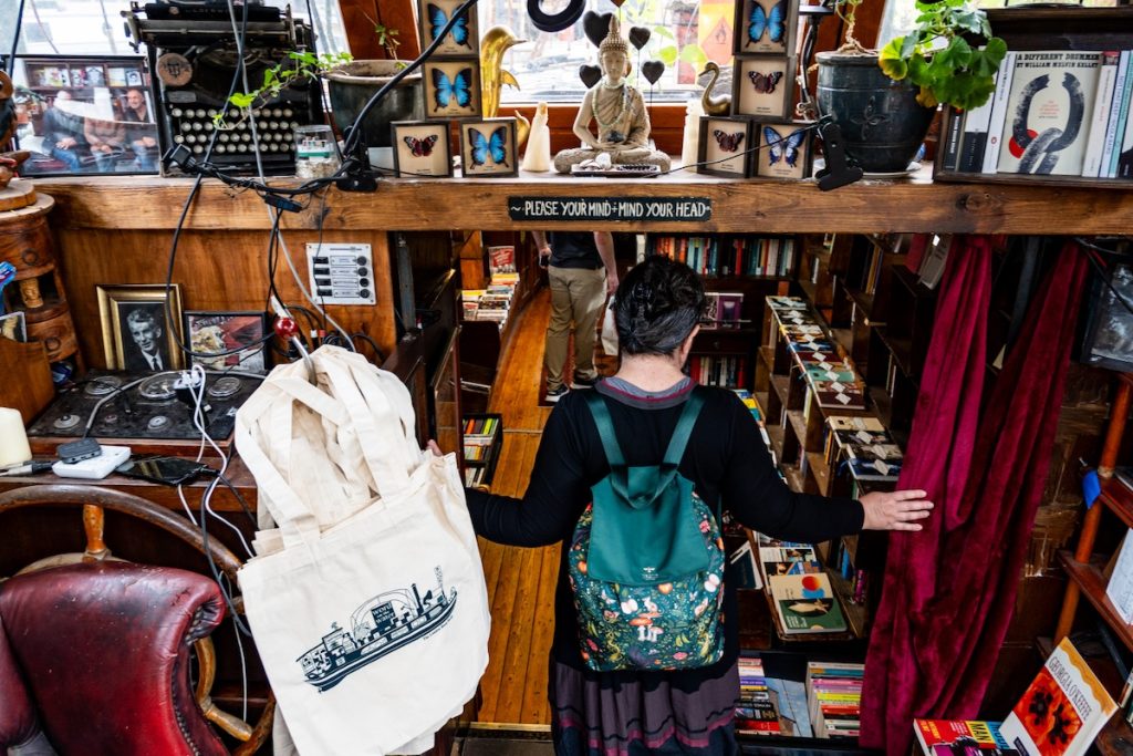 Nous remontons en métro jusqu’à St Pancras, que nous dépassons à pied pour aller découvrir Word on Water, une librairie installée à bord d’une péniche.