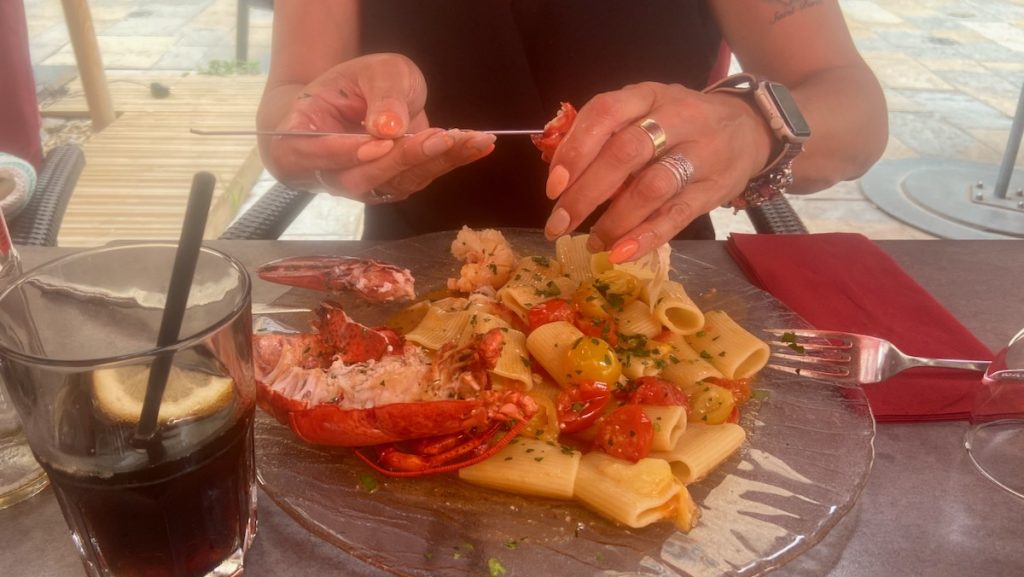 ★ « Le plat du jour, c’est des pacchieri au homard », nous annonce la serveuse du Zinc le midi. J’imagine un truc genre les tagliatelles au saumon, avec un semis de petits bouts de crustacé sur les pâtes. Du coup, je suis bien embêtée de voir arriver devant moi une demie-bestiole encore dans sa coquille – alors que j’étrenne justement une robe blanche.