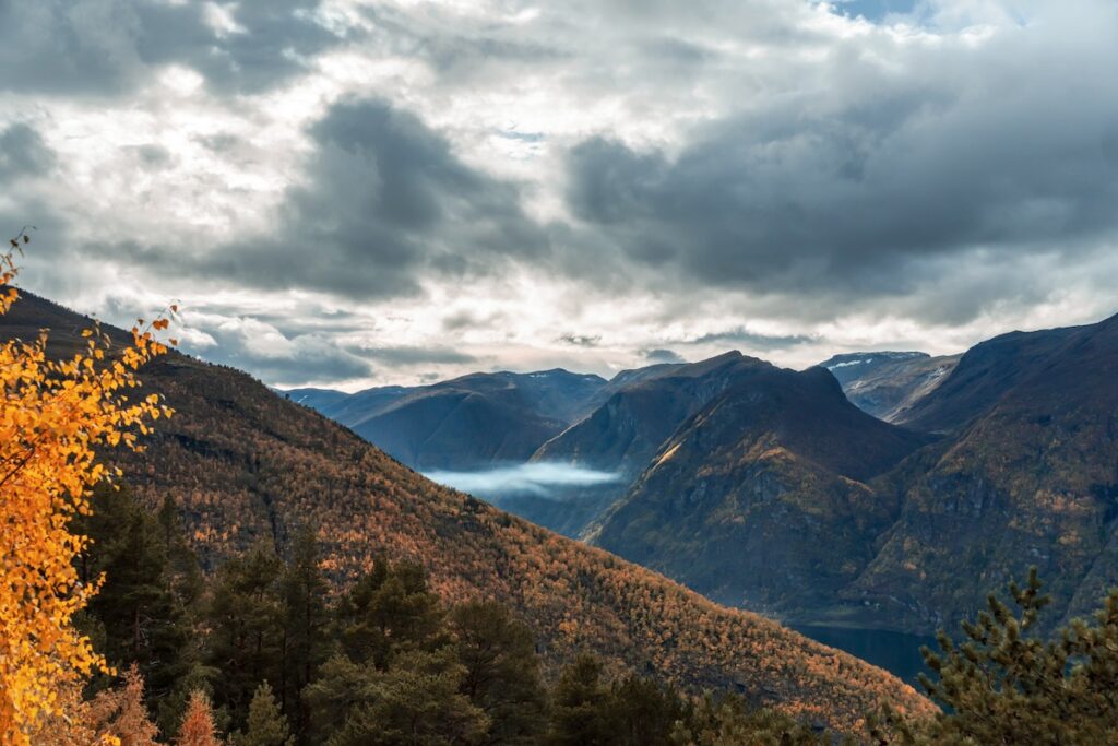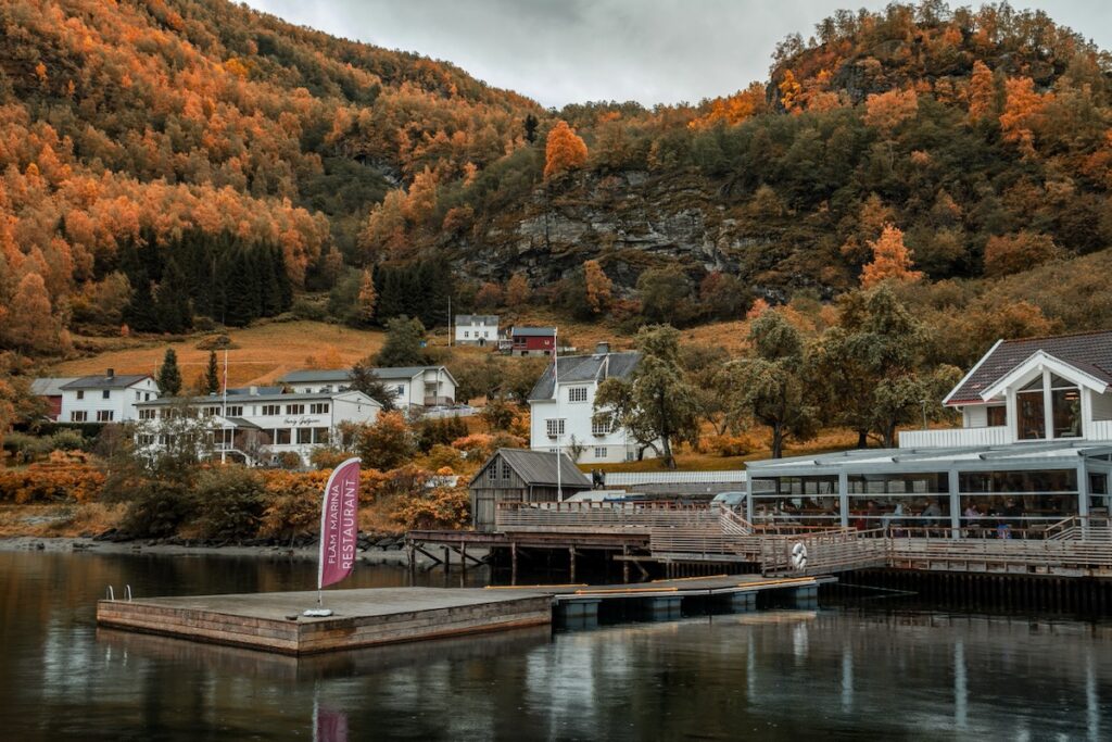 Après avoir pris quelques photos du côté de la baie opposé au Monstre Polluant, nous repassons à l’appartement et tentons de déterminer le programme du reste de la journée. A la base, je voulais faire la tyrolienne longue de presque un kilomètre et demie qui part de Vatnahalsen, pas très loin d’ici. Je déchante un peu en constant que pour ça, il faudrait faire presque une heure de train jusqu’au point de départ, puis une heure de vélo en descente pour regagner Flam. Sans même parler du coût exorbitant de l’opération, plus de deux heures de préparatifs/postparatifs pour deux minutes d’activité, ça me décourage. Je crains de refaire un meltdown au moindre grain de sable dans l’organisation. Et d’un autre côté, je sais que si je n’y vais pas, je le regretterai plus tard. C’est l’occasion d’une nouvelle dispute avec Chouchou, qui a du mal à supporter le retour de mon anxiété après presque un an d’absence. J’ai le moral au fond de mes chaussettes en laine.
