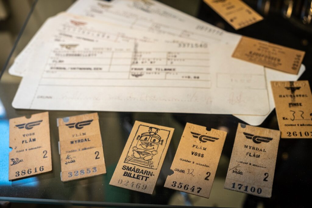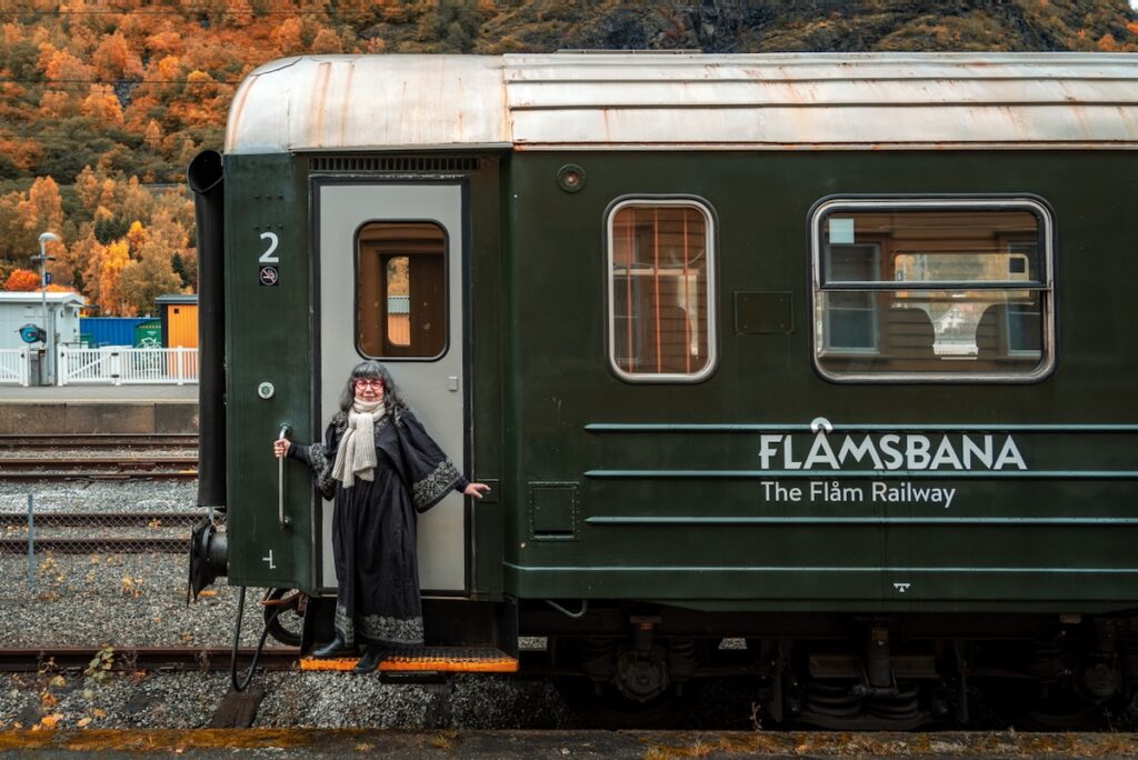 Pendant que je lutte fort pour ne pas péter les plombs, nous faisons un tour dans les boutiques de souvenirs puis entrons au musée du Flamsbana, considéré comme l’un des plus beaux trains du monde en raison de son trajet exceptionnel. (C’est celui que nous prendrons demain pour partir.) Le musée est gratuit et assez petit, mais super intéressant, ce qui me rassérène un peu. Je m’extasie devant l’histoire incroyable de la construction de la ligne entre Flam et Myrdal, pendant la Deuxième Guerre Mondiale. Je retiens une anecdote amusante: seuls les voyageurs avaient, à l’époque, le droit de boire de l’alcool au restaurant du village. De sorte que les habitants achetaient le billet le moins cher juste pour pouvoir picoler le soir. Le chef de gare était aussi le propriétaire du restaurant – et accessoirement, le directeur de l’école. Coïncidence? Je ne pense pas.