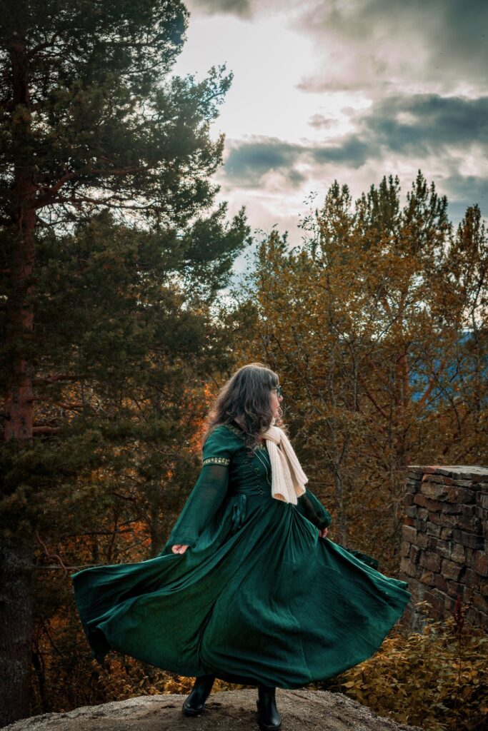 En ressortant du musée, je me sens légèrement mieux et j’accepte la suggestion de Chouchou de nous rendre cet après-midi au point de vue de Stegastein, une excursion d’une heure et demie au total. Je prends des billets sur une des machines du Visitors Center, puis nous allons déjeuner à la cafétéria: burger pour Chouchou, pavé de saumon et légumes vapeur pour moi. Nous utilisons le temps qui nous reste avant le départ du bus pour repasser à l’appartement, où je me change et enfile la robe verte de princesse achetée pour une occasion pareille. Sauf que la princesse est dodue et qu’elle aurait sans doute dû commander la taille supérieure. Mais bon, respirer, c’est pour les faibles.