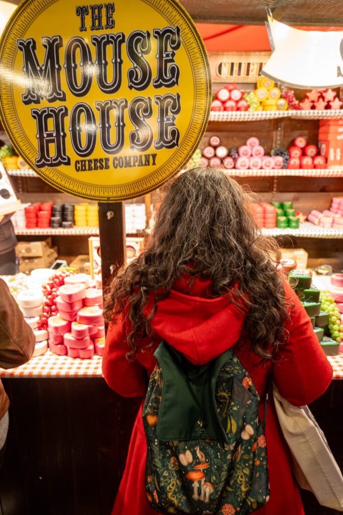 A la sortie, je danse toute seule dans les allées du marché de Noël tant je suis ravie. Au stand de The Mouse House, je fais l’emplette de trois cheddars: un au poivre noir, un fumé et un « mature ». Plus loin, je résiste vaillamment à l’appel d’une ravissante maisonnette en céramique (pas la place dans ma valise cabine) et d’une bague en pierre de lune pas donnée-donnée. Nous reconnaissons beaucoup de boutiques d’il y a deux ans. Et moi qui ne suis pas fan du tout de marchés de Noël, je dois avouer que j’aime bien celui-là, sans doute parce qu’il propose essentiellement des produits artisanaux écossais.
