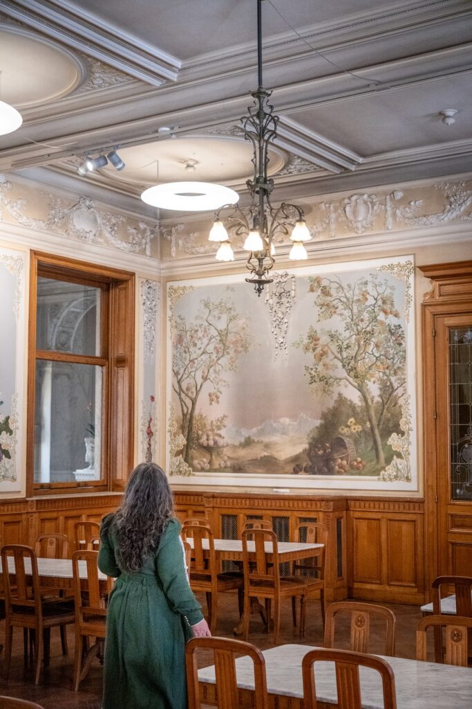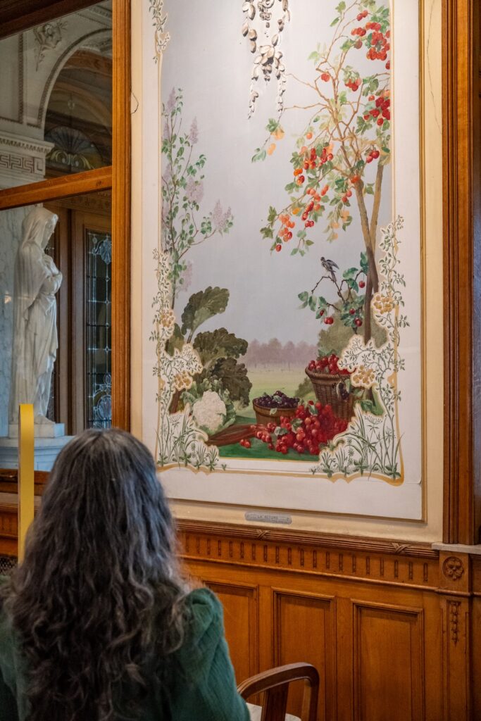 On ne peut qu’admirer la profusion de vitraux sublimes, ainsi que le soin avec lequel tous les détails originels ont été préservés – depuis la marquetterie jusqu’aux carrelages en passant par les lampes, les moulures et les nombreux tableaux.