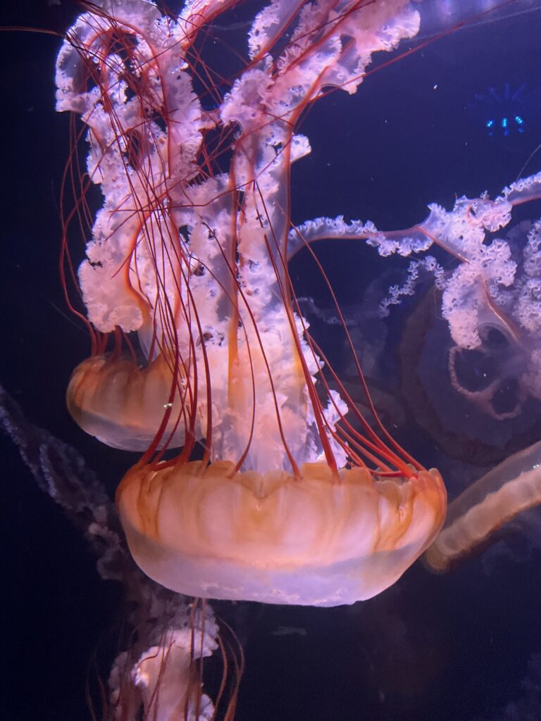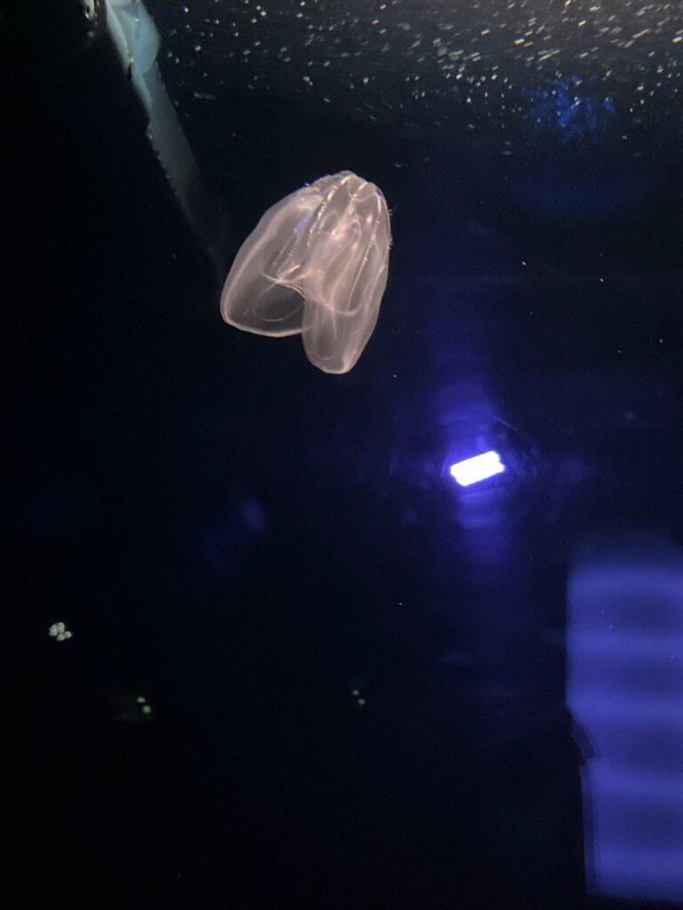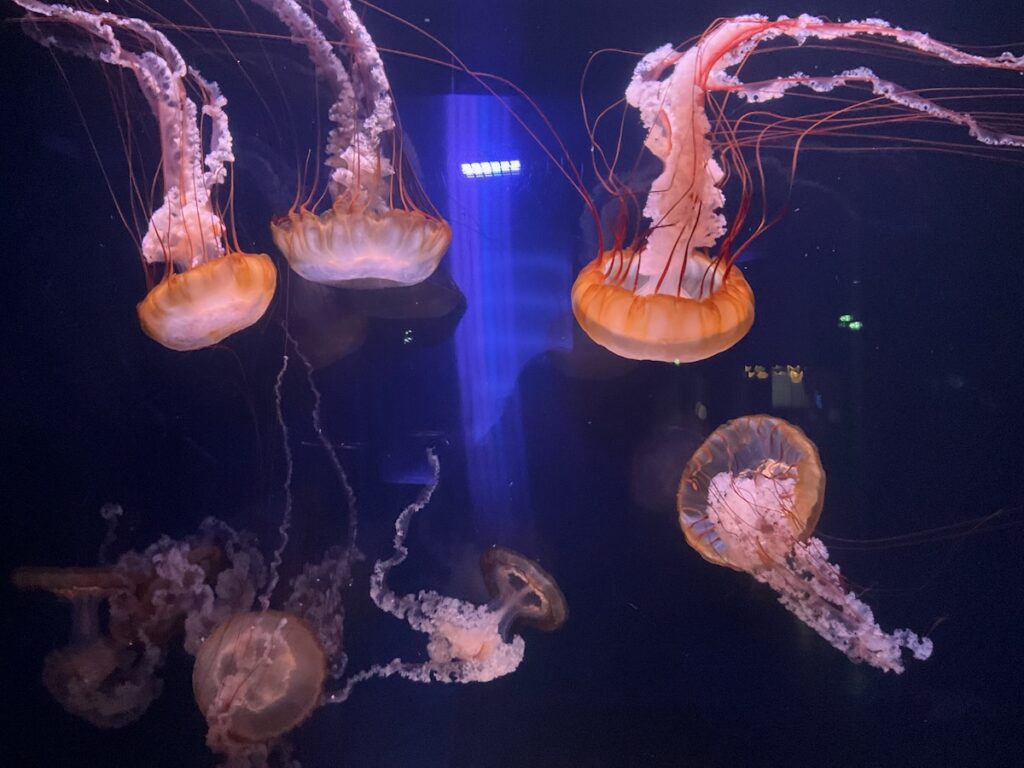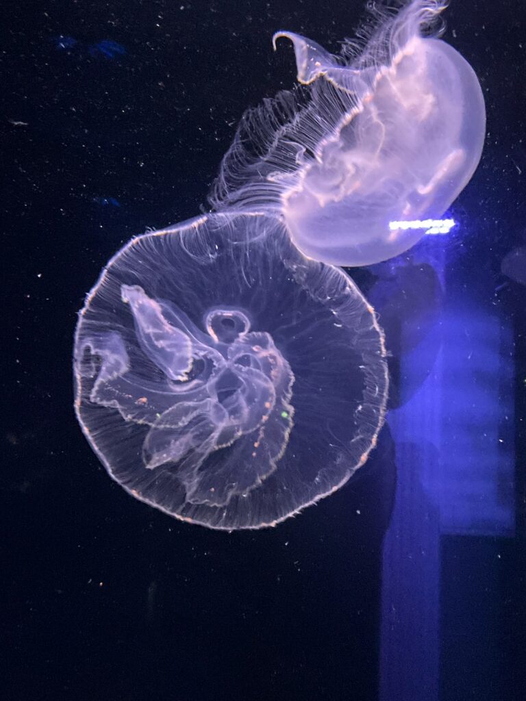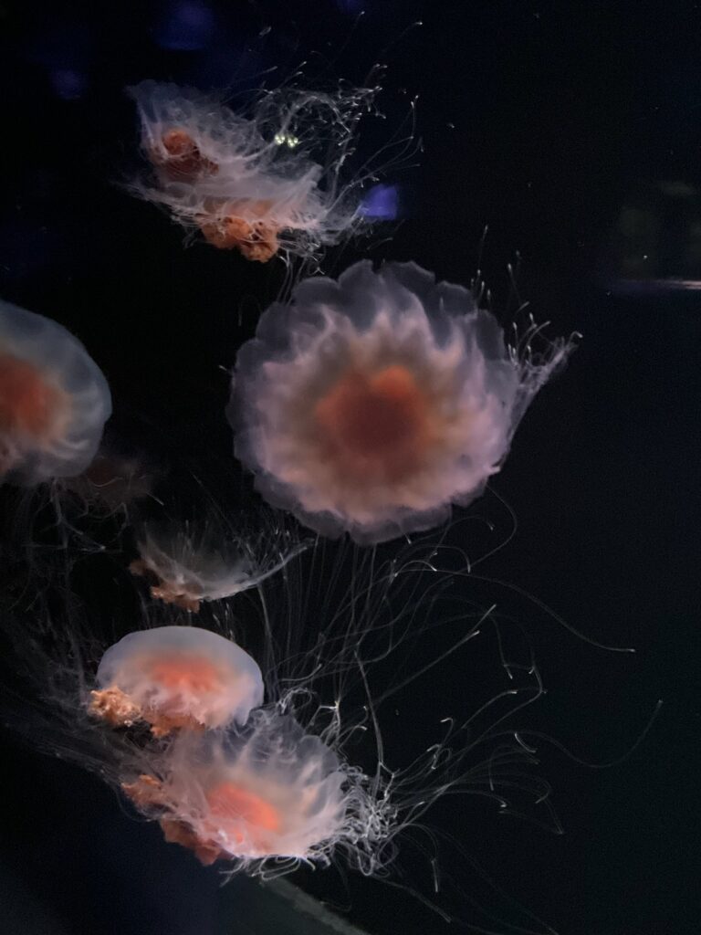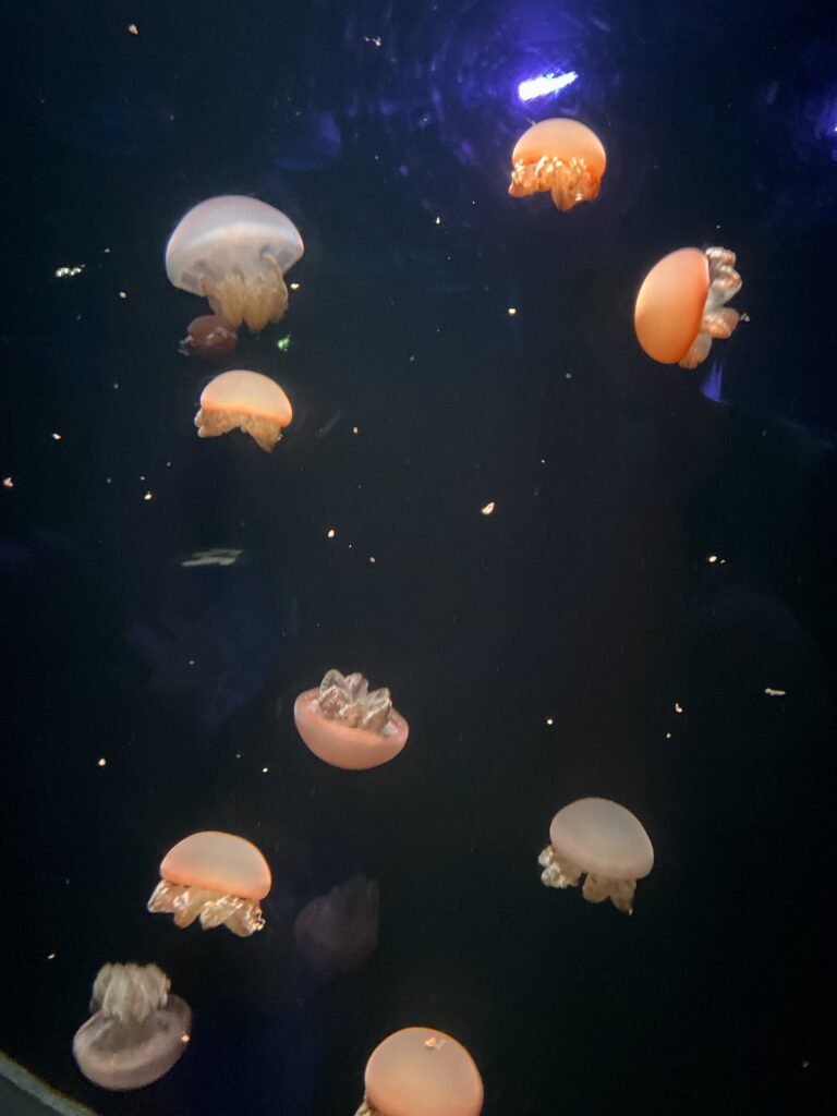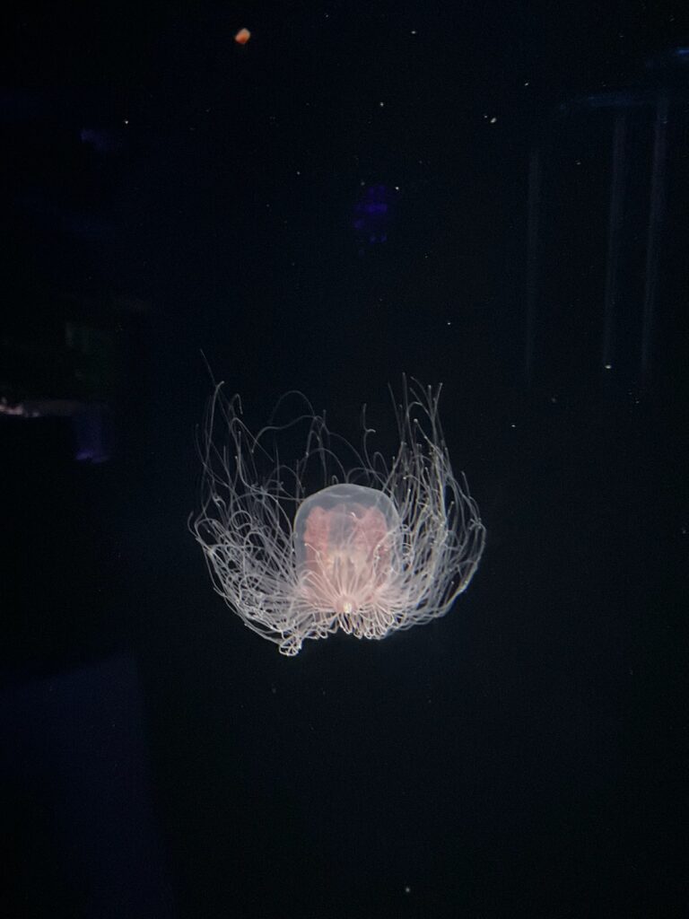 Nous prenons ensuite le métro jusqu’aux jardins du Trocadéro, et plus particulièrement à l’Aquarium de Paris qui abrite la deuxième plus grande collection de méduses au monde. Quand j’ai proposé cette visite à Isa, je pensais vraiment que l’idée ne l’emballerait pas – la méduse est quand même un intérêt spécifique assez « niche » -, mais elle a dit oui tout de suite.