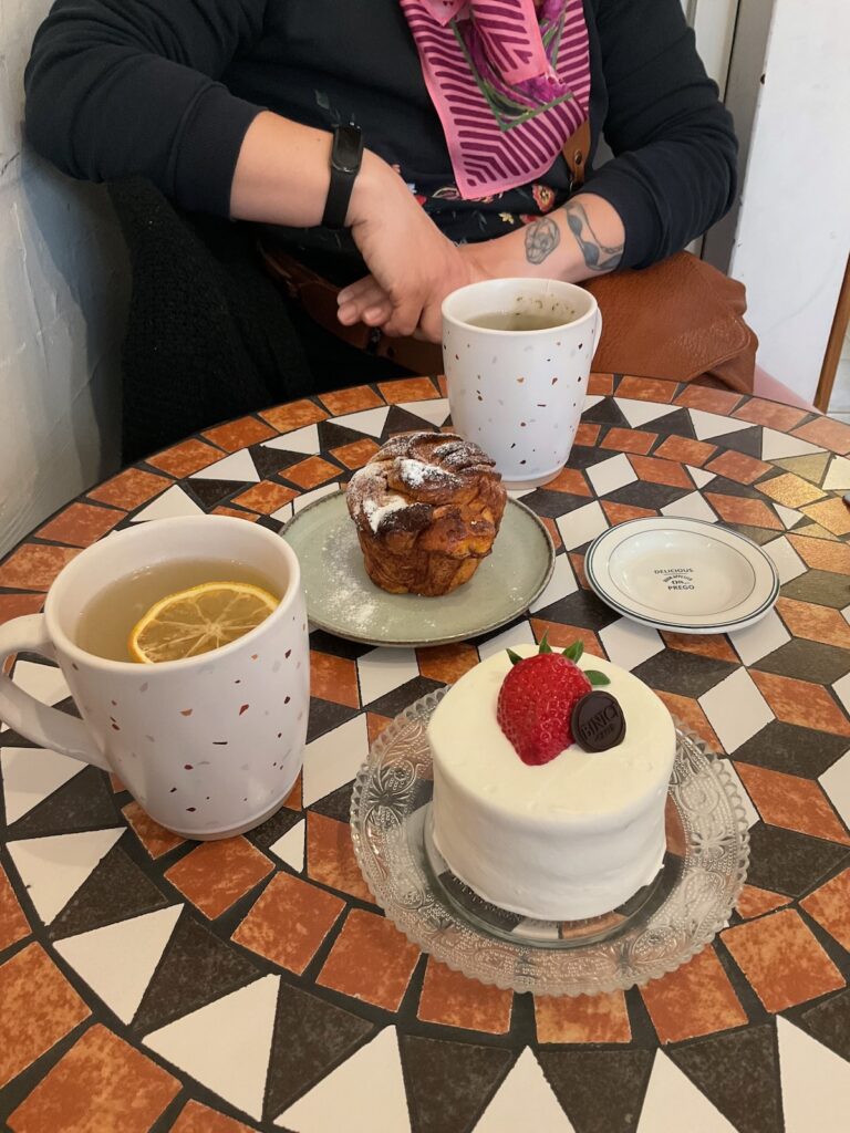 Malgré les prévisions météo, il fait encore beau aujourd’hui. Nous nous dirigeons à pied vers Binici, un salon de thé japonais où nous étions déjà allées ensemble. Est-ce qu’un strawberry shortcake accompagné d’un thé au yuzu fait un petit-déjeuner convenable? Probablement pas, mais c’est si bon! Avant de repartir, j’achète deux intrigants scones à l’ail pour bruncher demain avec Chouchou. (Spoiler: nous les trouverons unanimement infects.)