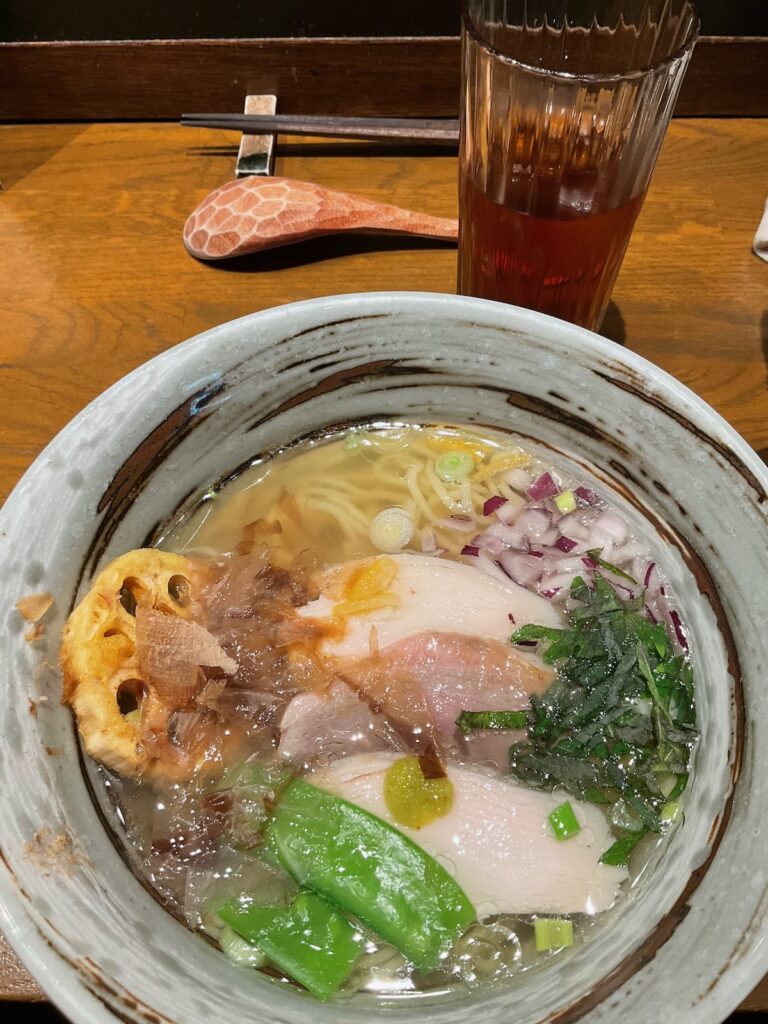A ce stade, il est tard et nous avons l’estomac dans les talons. Nous retournons vers la rue Sainte-Anne où j’ai deux restaurants japonais à tester. La file devant l’Omusubi Gonbei est assez dissuasive. Mais lorsque nous tentons notre chance au Bistro Ryukishin chaudement recommandé par plusieurs amies parisiennes, on nous propose aussitôt deux places au comptoir. J’aurais préféré une table, mais tant pis – ça fera encore plus authentique. Je commande un tchintan yuzu sur la carte de saison, et Isa un païtan sésame. Verdict: leurs fameux ramen sont effectivement fameux.