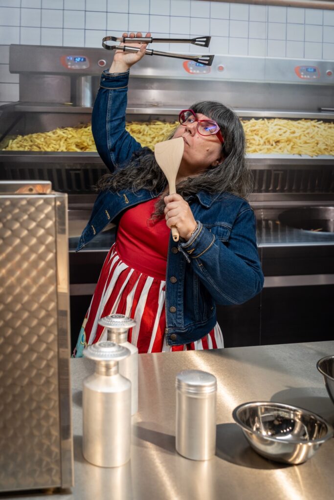 On apprend des tas de choses sur les pommes de terre, leur culture et la manière de les transformer en les meilleures frites possibles. Par exemple, que les Incas avaient une déesse de la pomme de terre: Axomama, fille de Pachamama la déesse de la terre. Que la pomme de terre est la plante cultivée qui possède le plus de variétés au monde – environ 4000. Ou encore qu’il est possible de mesurer la fritabilité des pommes de terre en les plongeant dans l’eau: en-dessous d’un certain poids mouillé, elles donneront des frites molles; en-dessus, elles donneront des frites sèches.
