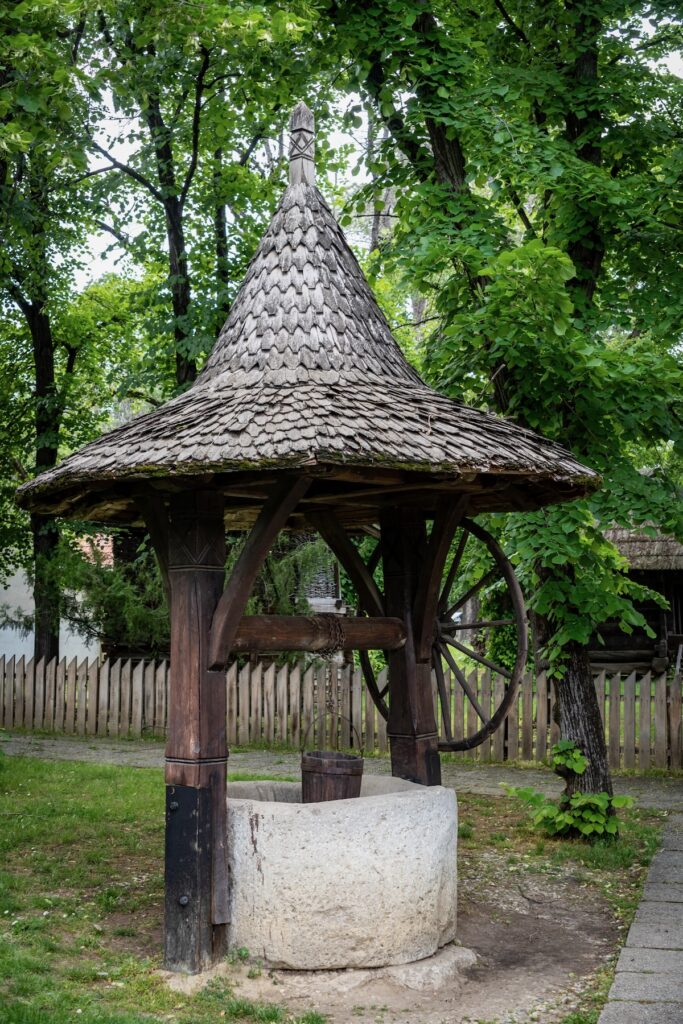 Nous prenons la ligne 2 et descendons 4 stations – toutes aussi flippantes les unes que les autres – plus loin, à Aviatorilor, près de l’Arc de Triomphe local. Là, nous nous engageons dans le parc du roi Michel 1er et le trouvons assez décevant. Même le jardin japonais fait triste mine avec ses bassins dans lesquels ne clapotent que quelques centimètres d’eau croupie. Histoire de ne pas être venus pour rien, nous décidons de visiter le musée du village roumain qui se trouve juste à côté. Nous en avons déjà fait quelques-uns, notamment à Stockholm, à Oslo et à Riga; c’est toujours aussi intéressant que photogénique. Mais nous galérons pour trouver l’entrée. Il n’y a aucun panneau indicateur, et nous devons longer la clôture sur un kilomètre avant de tomber enfin sur un point d’accès. Un touriste français qui arrive juste de Sofia nous colle aux basques et tente d’engager la conversation, mais nos réponses lapidaires le découragent. Sitôt payé son ticket à 30 lei, il part de son côté.