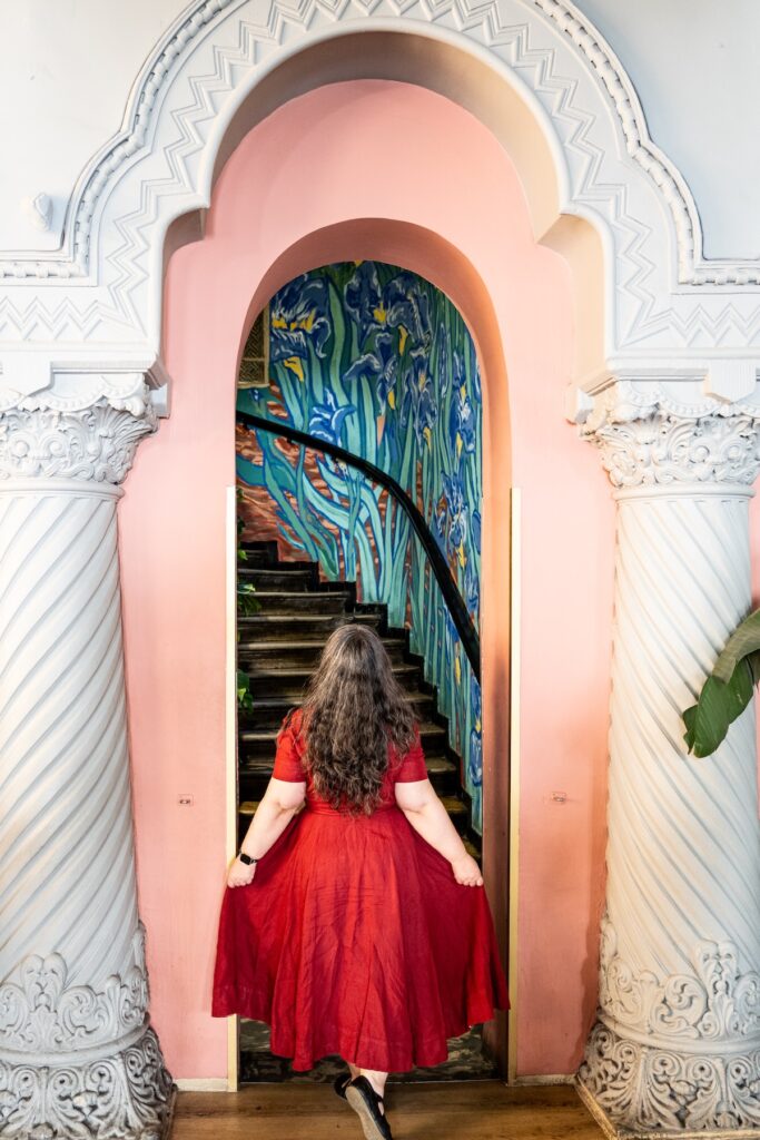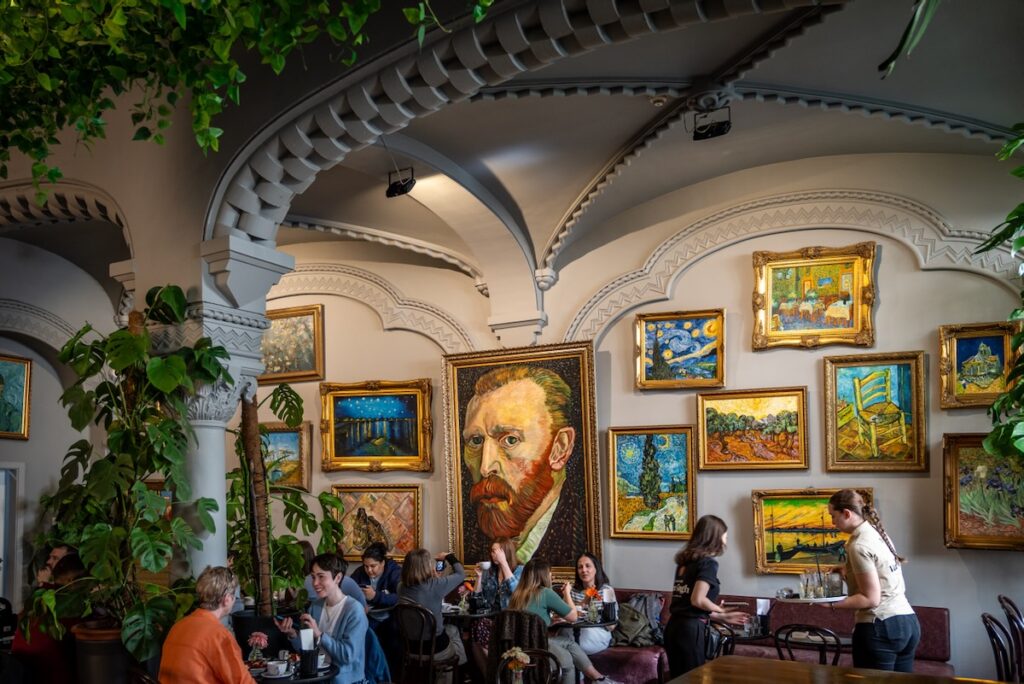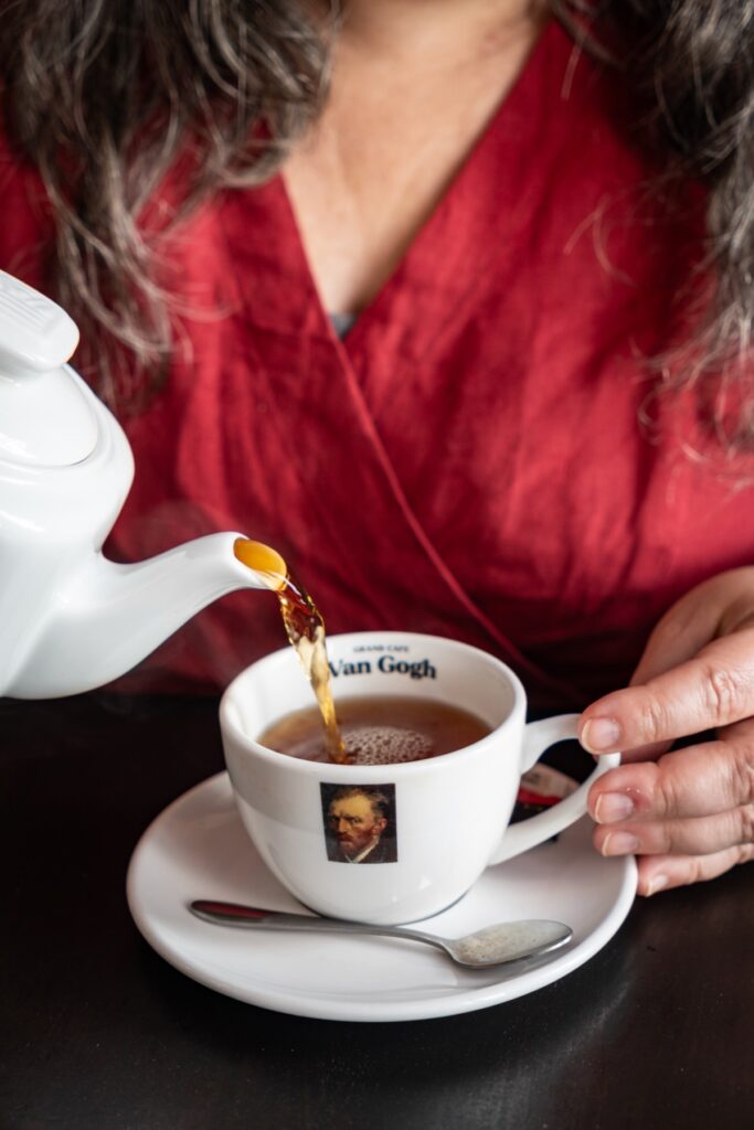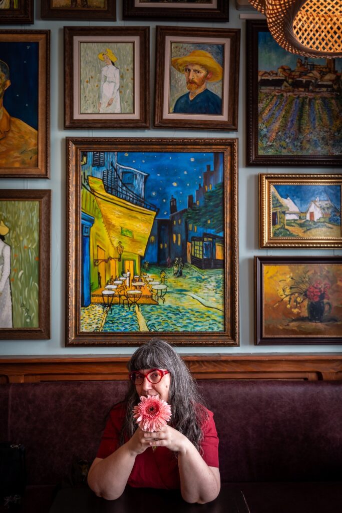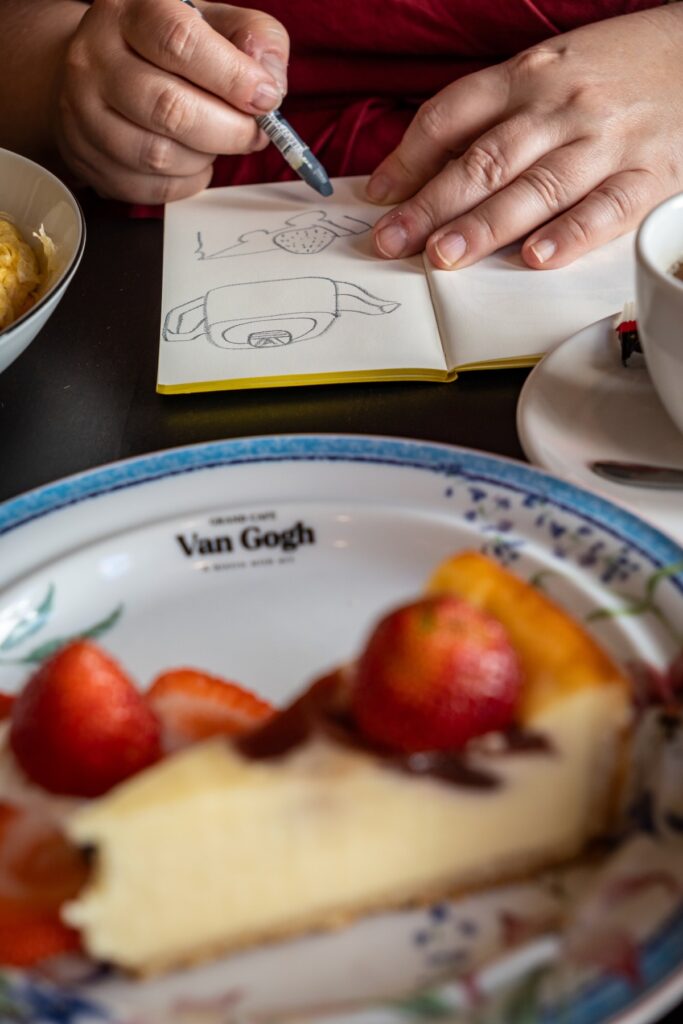 Nous commençons par un brunch au Grand Café Van Gogh. Très joliment décoré, il propose une carte essentiellement sucrée à base de pancakes et de brioche perdue, plus une quiche salée et des omelettes. Nous optons tous les deux pour la quiche: il n’y en a plus, nous informe le serveur. Le thé vert nature? Personne n’en boit ici. Nous finissons donc avec deux omelettes jambon-fromage accompagnées d’un thé au jasmin pour Chouchou et d’un Earl Grey pour moi, plus un cheesecake à la fraise que nous partageons. Montant de l’addition: plus de 40€, ce qui correspond à ce que nous aurions payé à Bruxelles.