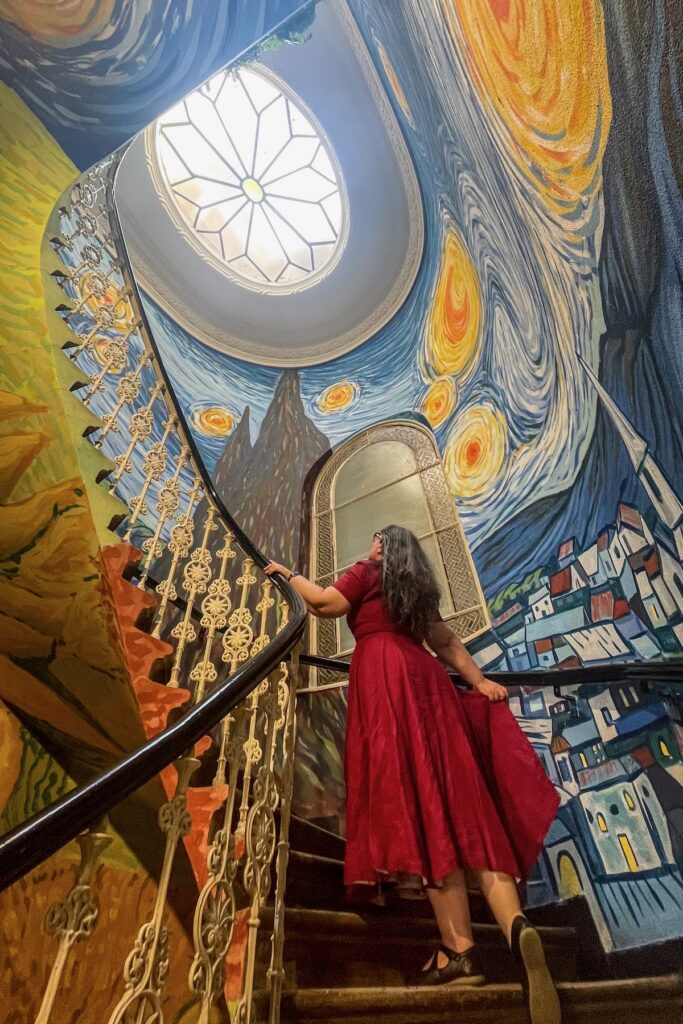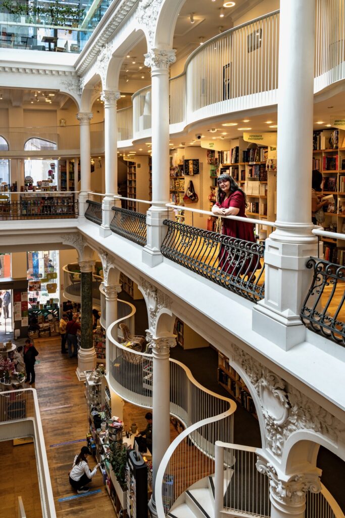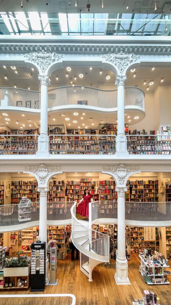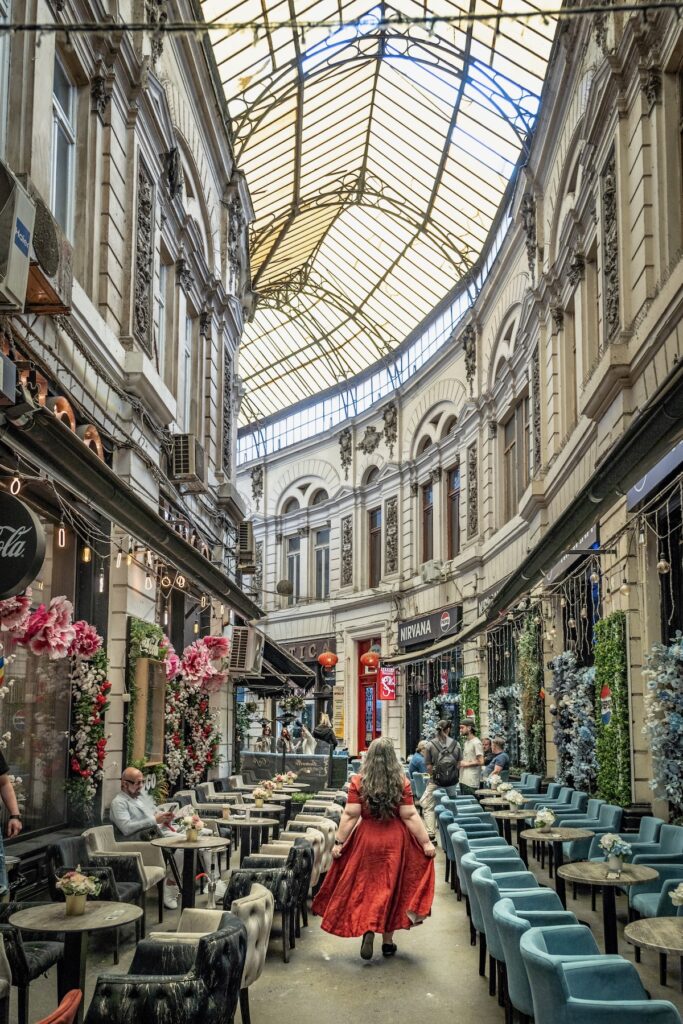 Repus, nous nous dirigeons vers l’un des deux objectifs de ce voyage: la librairie Carturesti Carusel, régulièrement citée (et montrée sur Instagram) parmi les plus belles du monde. J’ai le plaisir de vous informer qu’elle le mérite. J’adore son atrium lumineux bordé de rambardes blanches ondulées. Avant même de nous intéresser aux livres, nous prenons une bonne centaine de photos en poussant des exclamations ravies.