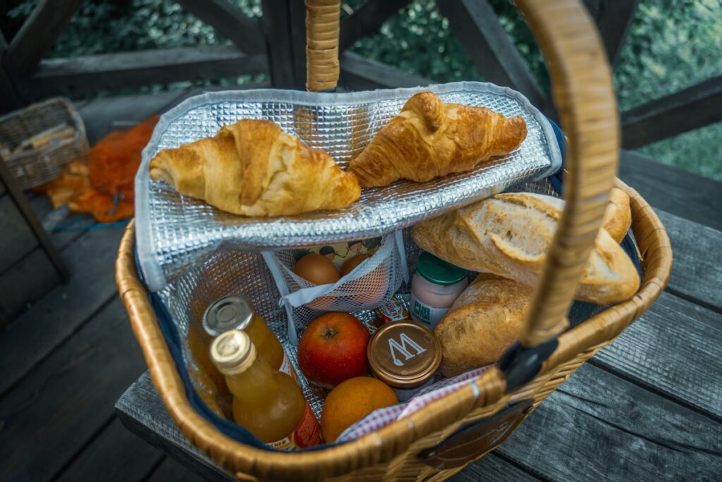Nous avons mis plein de photos en boîte, et Chouchou a fait aussi quelques vidéos avec son drone. J’ai rempli un carnet de dessins au pastel sec plutôt médiocres, mais qui ont le mérite d’exister. Nous nous sommes longuement prélassés dans le bain nordique alors que la nuit tombait sur la forêt, et j’avoue que c’était assez magique. Nous avons pris tous nos repas dehors – sauf le samedi soir où il pleuvait trop – et été réveillés par le chant des oiseaux et la lumière du soleil filtrant à travers les frondaisons. Nous avons découvert les yaourts à la grenade dans notre panier petit-déjeuner (c’est très bon) et fait la vaisselle à la main comme ça ne nous arrive plus qu’en vacances. Grâce à l’écran de végétation autour d’Amélia, nous aurions pu nous croire seuls au monde ou pas loin. Ca m’a fait un bien fou.