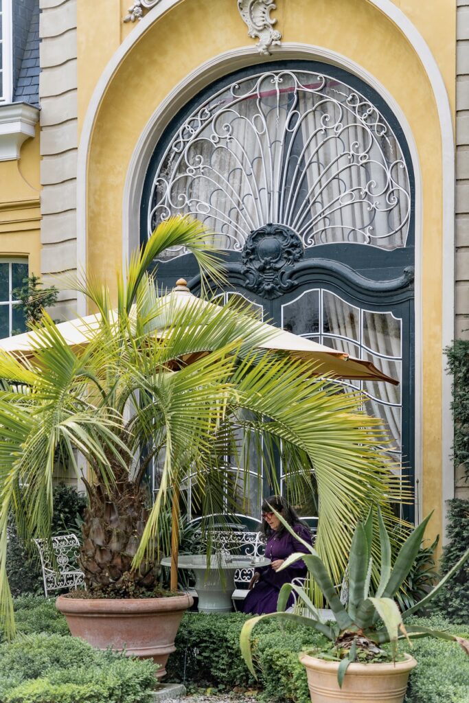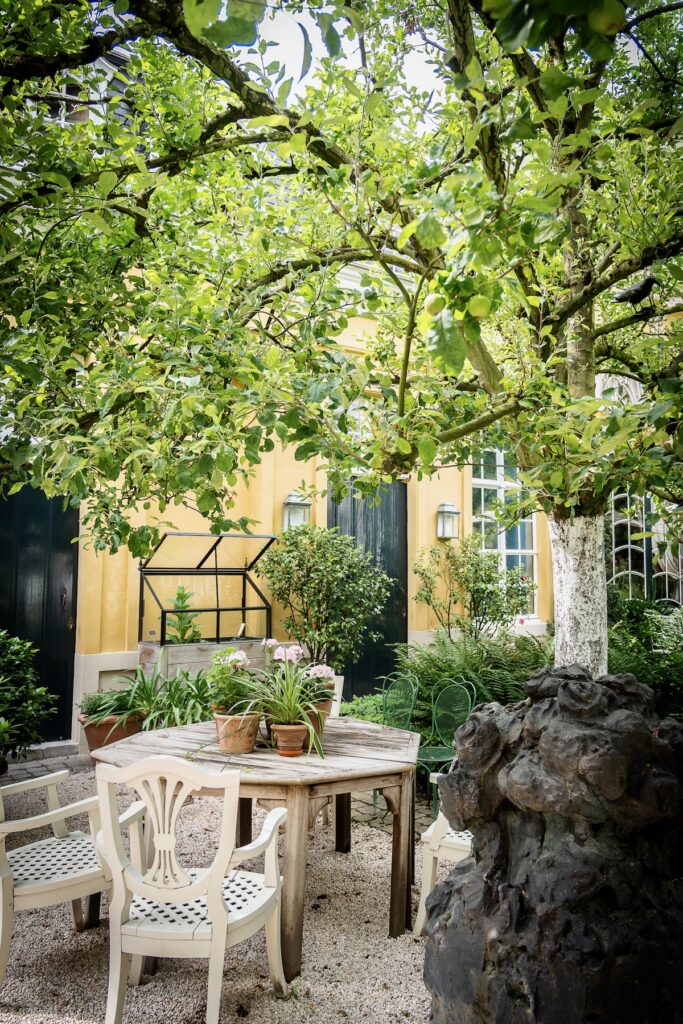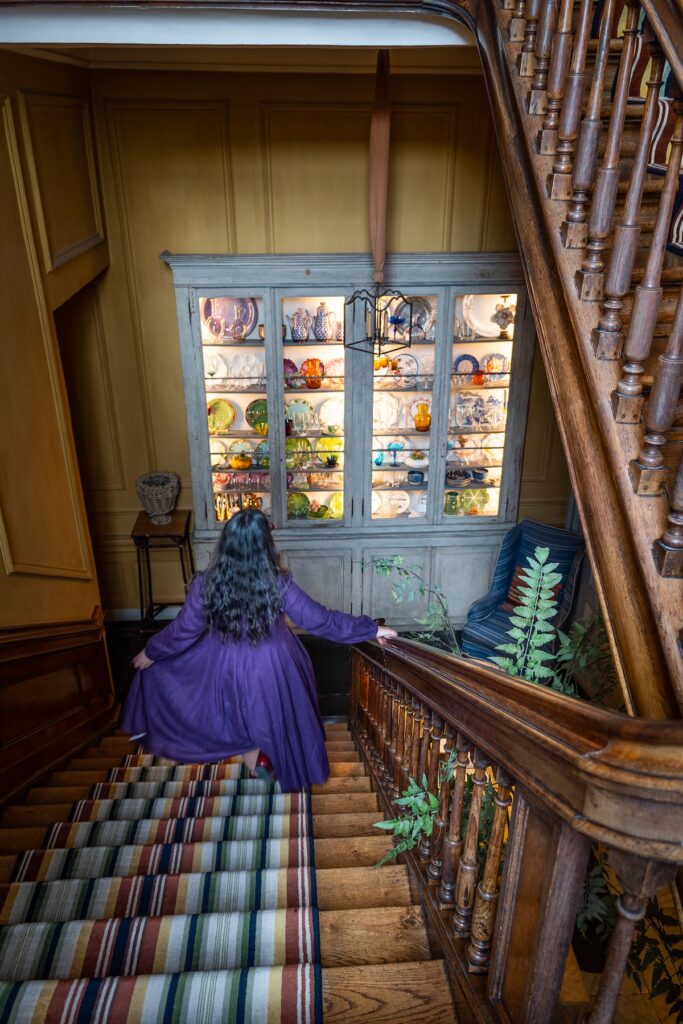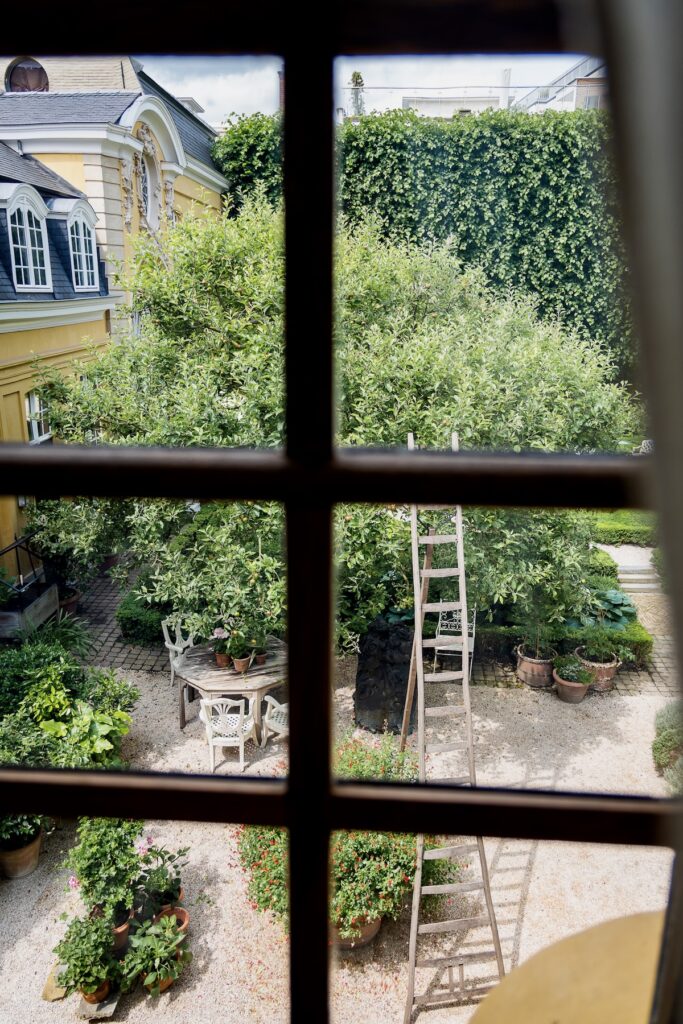 Une fois installés, nous partons faire le tour du propriétaire. D’abord le beau et paisible jardin intérieur, puis les parties communes de l’hôtel que les clients sont encouragés à explorer. L’atmosphère est chaleureuse et le ton résolument maximaliste, avec de très belles collections d’objets exposées un peu partout. La météo est plus que maussade en ce début juin, mais pourquoi s’embêter à sortir quand on est si bien dedans?