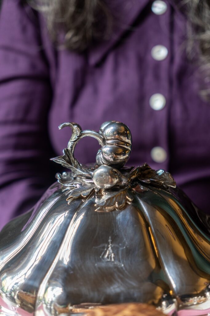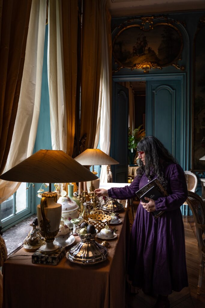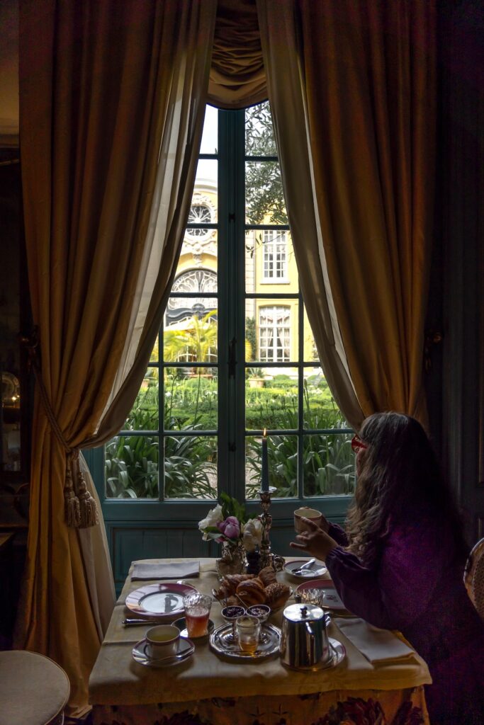 Malgré la présence du très gentil chien des propriétaires et la quantité ahurissante de bibelots, je note qu’il n’y a pas le moindre poil ou grain de poussière en vue. Tout n’est qu’ordre et beauté, luxe, calme et propreté. (Pardon, Charles.) Toutes les chambres sont occupées, mais c’est à peine si nous croisons ou apercevons les autres clients de loin.