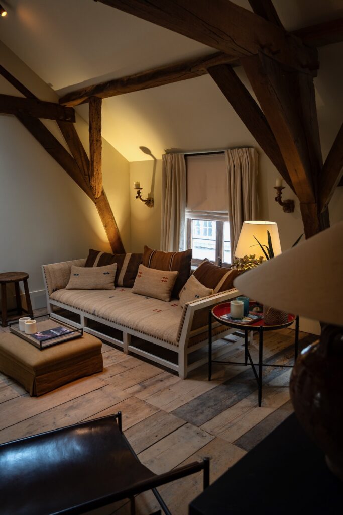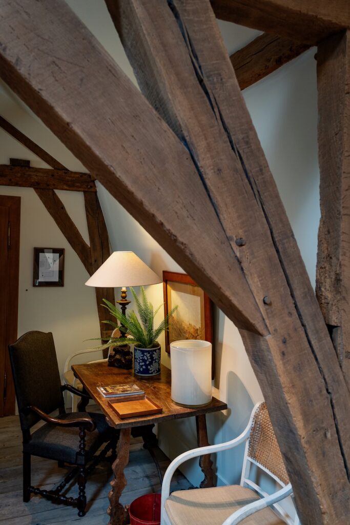 A notre arrivée vendredi dernier, Jan nous informe que la chambre que nous avions réservée (la suite junior Paola) n’est finalement pas disponible, et qu’il nous a surclassés en nous attribuant l’une des suites d’Arthur situées dans l’ancienne écurie. La déco est très, très différente, mais nous aurons aussi plus de place et une cuisine équipée – que nous n’utiliserons pas, car nous ne restons qu’une nuit et avons prévu de manger dehors le soir.