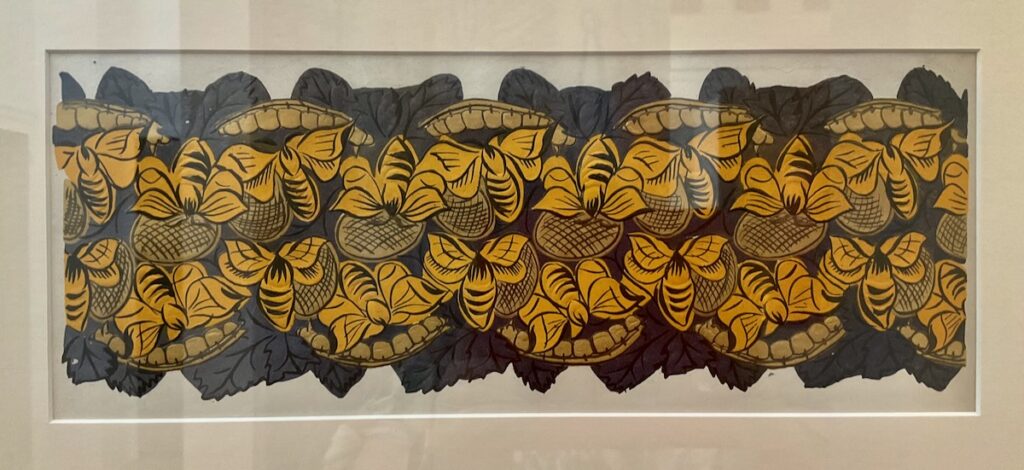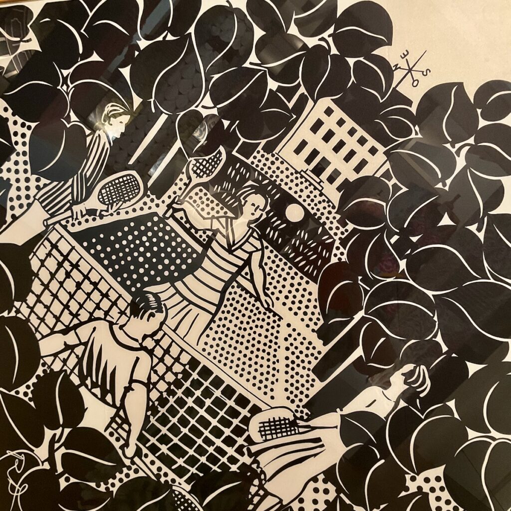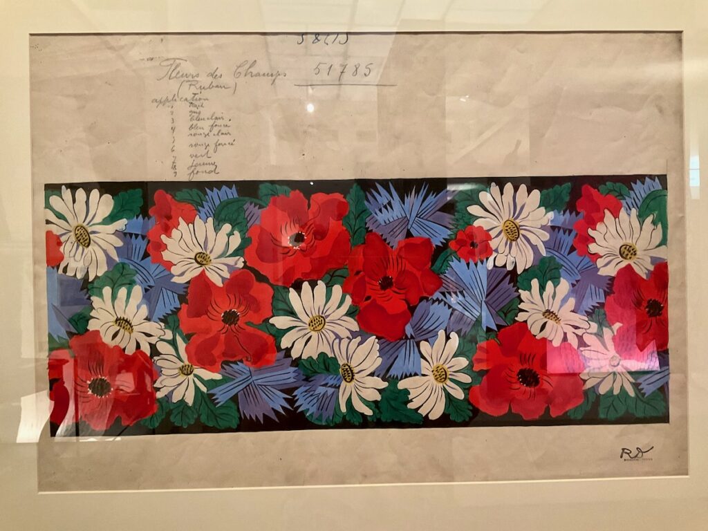 En juin 2022, j’ai eu le plaisir de visiter la très belle rétrospective que l’hôtel de Caumont avait consacrée à son oeuvre. J’ai d’abord pensé que la nouvelle expo de La Banque en serait une version plus concise, une sorte de best of. C’est seulement en arrivant sur place que j’ai fait attention à son intitulé complet: « Raoul Dufy et la mode ». J’ai été très agréablement surprise de pouvoir ainsi découvrir un aspect beaucoup moins connu de son travail.