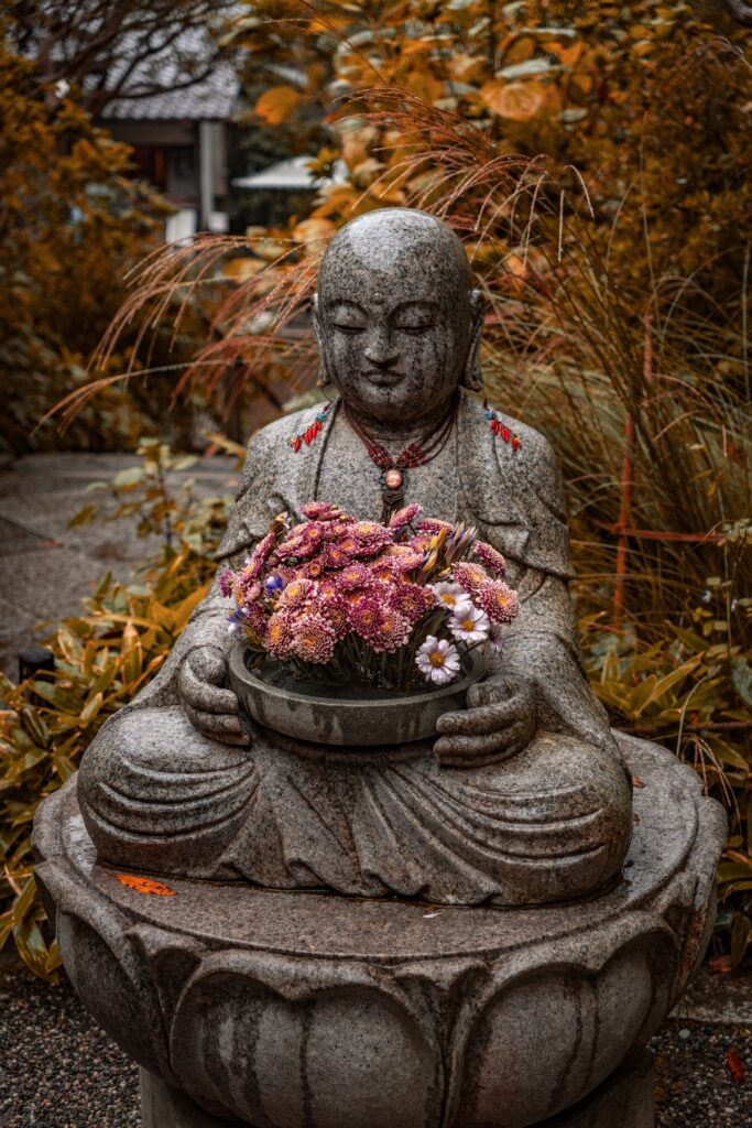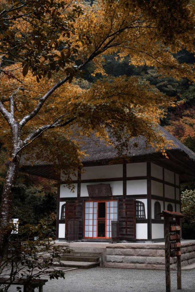 Au Meigetsu-in, les hortensias qui encadrent le grand escalier ont fané, et les arbres n’ont pas encore pris leurs couleurs d’automne. De plus, impossible d’approcher la porte ronde si photogénique. Pourtant, le lieu m’enchante. Discret et modeste, il témoigne néanmoins d’une attention infinie aux détails et dégage une puissante impression de paix.