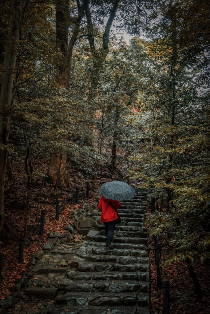 Il nous faut plus d’une heure de train pour gagner Kita-Kamakura, gare minuscule qu’on croirait sortie d’un anime de Makoto Shinkai. La pluie a au moins un avantage: bien que ce soit le week-end, nous ne sommes pas très nombreux à nous engager sur le chemin qui dessert les nombreux temples de la ville.