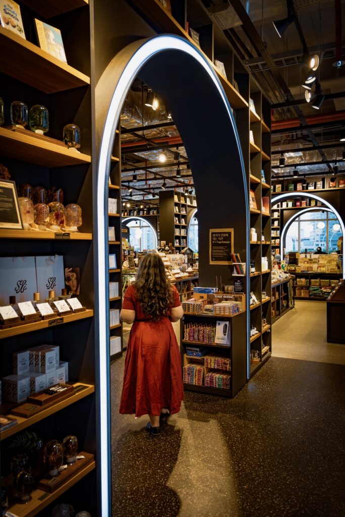 Destination suivante: la librairie Arc N Book, au 4ème étage du Mall. Magique avec ses enfilades d’arches lumineuses et la multitude de goodies adorables vendus au milieu des livres. Il y a même un joli café où je mange un chausson aux pommes semi-décent. Si je lisais un peu le hangeul, je pourrais passer une journée entière ici et ne pas m’ennuyer une seconde.