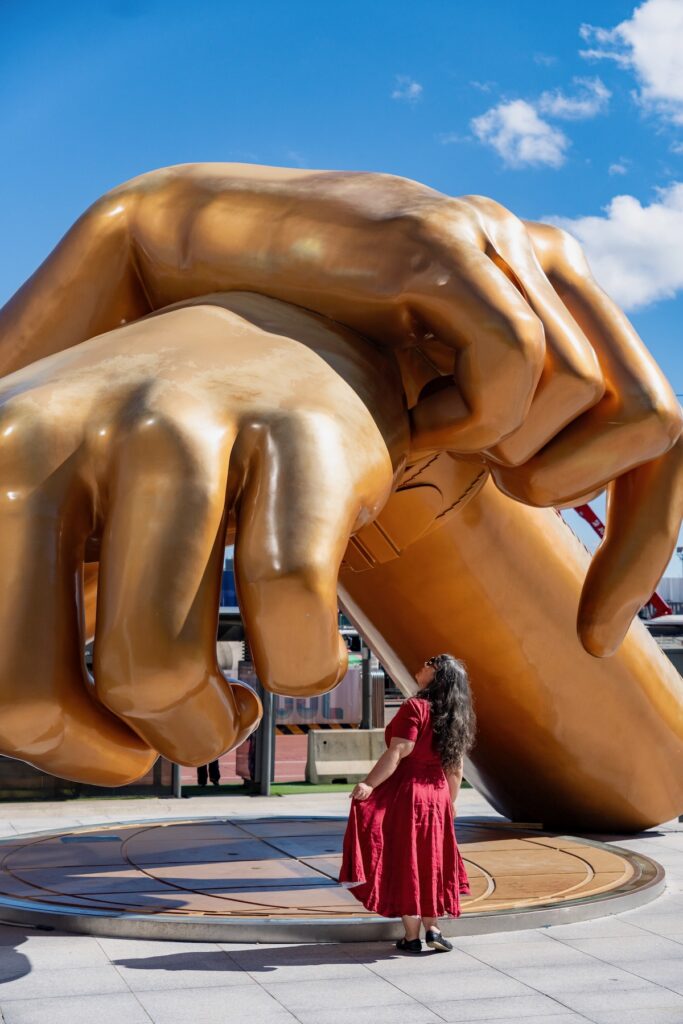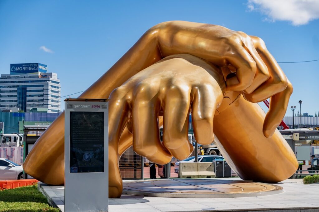 Nous prenons ensuite un Uber au niveau de la sculpture de main dorées Gangnam Style. Comme notre premier chauffeur de taxi, celui-ci ne décroche pas un mot et roule comme un fou. Mais c’était ça ou un trajet long et chiant en métro.