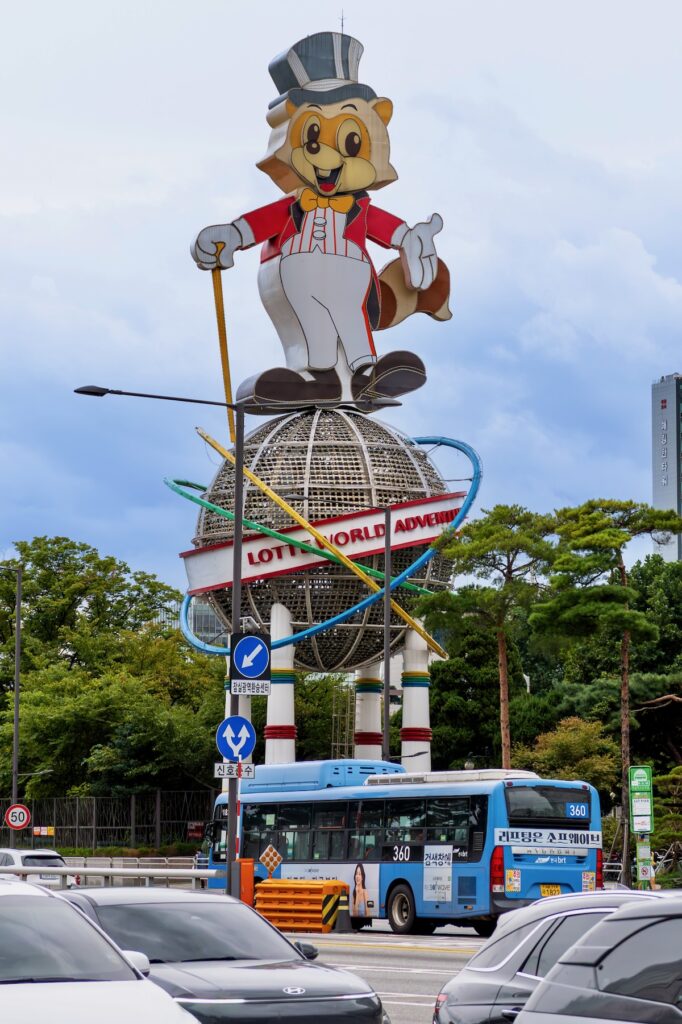 Métro jusqu’au complexe Lotte World Tower + Lotte Mall. Ici à Séoul, le nom de Lotte s’affiche partout. Comme nous le voyions pour la première fois, nous l’avons cherché sur Google: c’est celui d’une très grosse entreprise coréenne qui a commencé dans l’agroalimentaire mais qui touche désormais à tous les domaines du commerce.